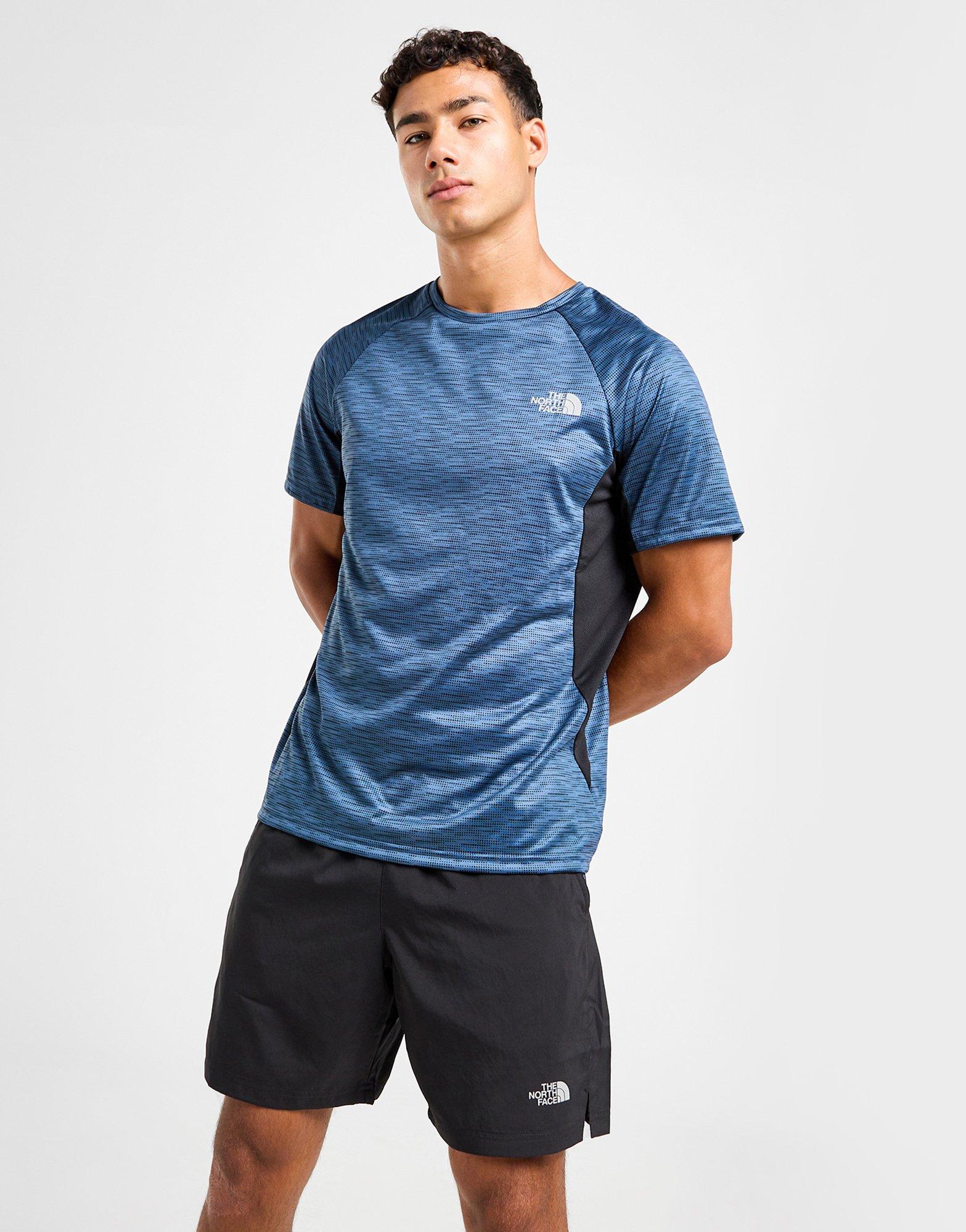 Level up your look with this men's Performance All Over Print T-Shirt by The North Face. Exclusive to JD, this regular-fit top lands in a Blue colourway and is made with a breathable poly fabric for all-day comfort. It features a crew collar with short sleeves for a classic cut, and is signed off with The North Face Dome logo to the chest. Machine washable. | Our model is 6'1" with a 39" chest and wears a size medium.