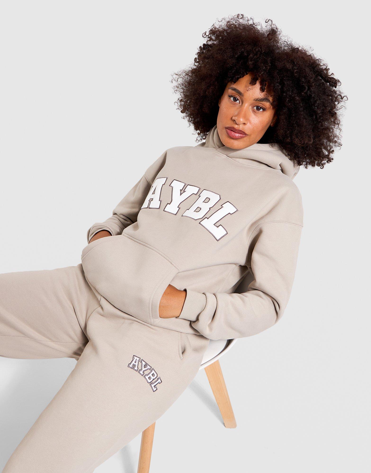 The women's AYBL Varsity 2.0 Oversized Over-Head Hoodie in Tan with White is the warm, neutral colourway for women who want their activewear to feel as considered as the rest of their wardrobe. Built from AYBL's best-selling 51% cotton and 49% polyester super soft fabric blend with an oversized fit, kangaroo pocket, and ribbed cuff and hem, it delivers the kind of everyday comfort that earns daily rotation whether you are resting, training, or doing both. The upgraded embroidered Varsity 2.0 logo with a soft suede handfeel adds a premium touch that elevates this beyond the typical women's gym hoodie. The Tan with White colourway pairs easily with earth-toned activewear or relaxed basics. Style Code: 010344-0421