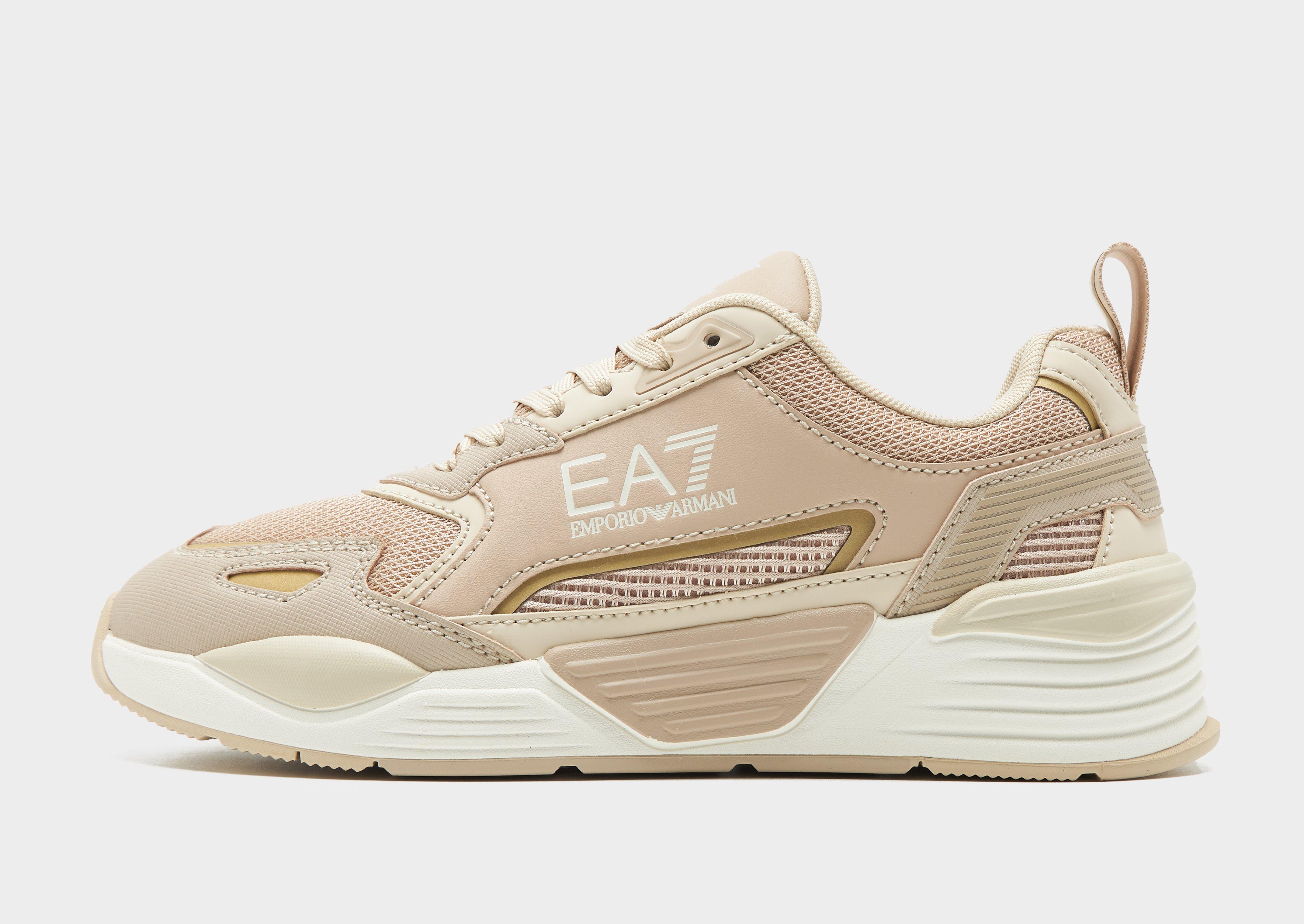 Switch up your rotation with premium style in these women's Ace Runners trainers from Emporio Armani EA7. In a Tan colourway, these sneakers have a breathable mesh upper, with synthetic overlays for added support. They feature a tonal lace-up closure and pull tabs to the tongue and heel for easy access, as well as a plush ankle collar for step-in comfort. Underfoot, the chunky yet lightweight midsole provides a soft, springy ride, while the durable rubber outsole offers a grippy step. Finished off with signature EA7 branding to to the tongue pull and heel, with an oversized logo stamped to the sidewall.