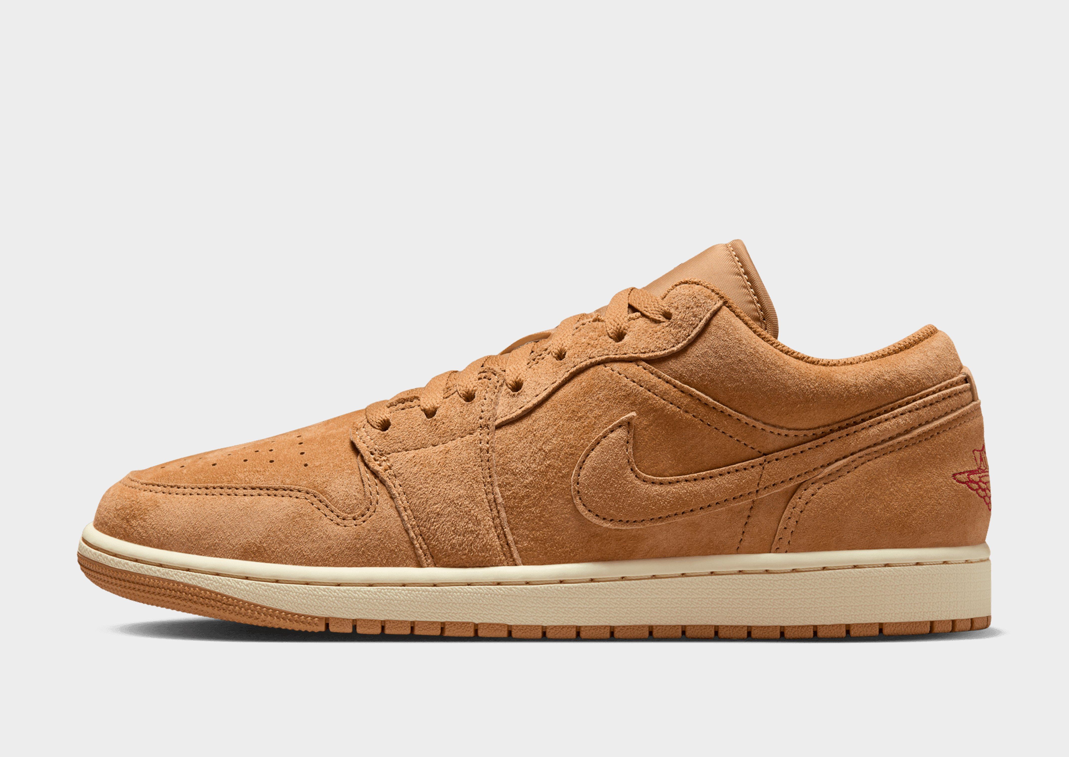 Keep your rotation iconic with the epitome of sneaker culture: the Air Jordan 1 Low. Born from the collaboration between Nike and basketball legend Michael Jordan in 1985, the AJ1 changed the game forever, shattering conventions with bold colours and silhouettes. In a Flax Brown colourway with Cream details, these low-top shoes are crafted from a leather, synthetic leather and textile blend across the upper for support. Underfoot, the foam midsole combines with Nike Air cushioning for lightweight comfort, while the durable rubber outsole has pivot circles for retro-inspired traction. With a padded ankle collar and perforations on the toe, these kicks are finished off with the Swoosh and Air Wings logo to the sidewalls and the iconic Jumpman to the tongue. Decades later, the AJ1 remains an icon of style and athleticism, transcending generations with its timeless design and legendary status. Style Code: HV4089-200