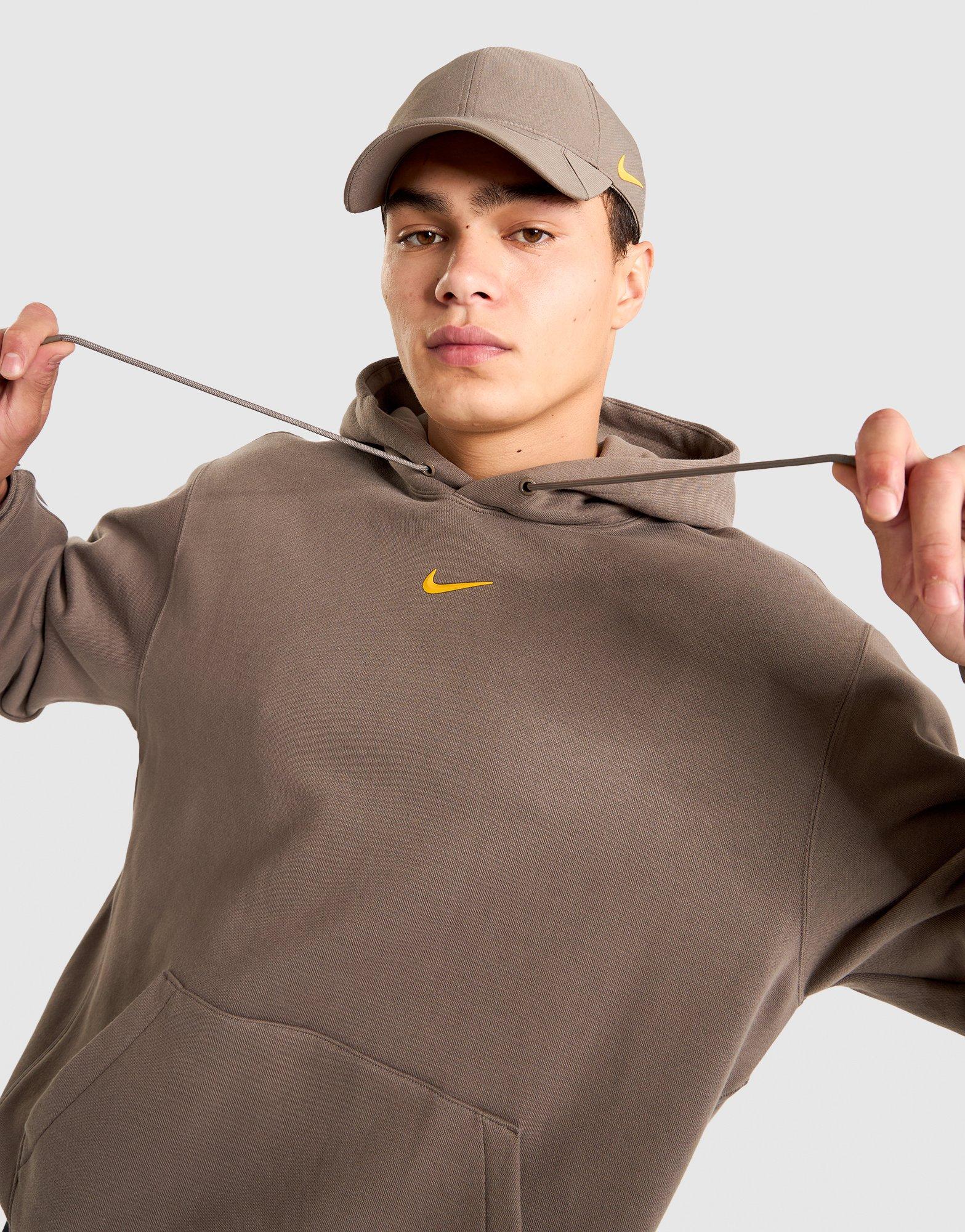 The Swoosh links up with Drake again in this Nike x NOCTA collab. This men's Energy Hoodie from the collection comes in a Brown colourway, cut from thick cotton-rich fleece for next-level comfort. The oversized fit gives it that laidback vibe, while an adjustable drawcord through the hood gives you some custom styling. It has elasticated ribbed trims to secure the fit, and a roomy kangaroo pocket up front. Signed off with Nike x NOCTA branding.