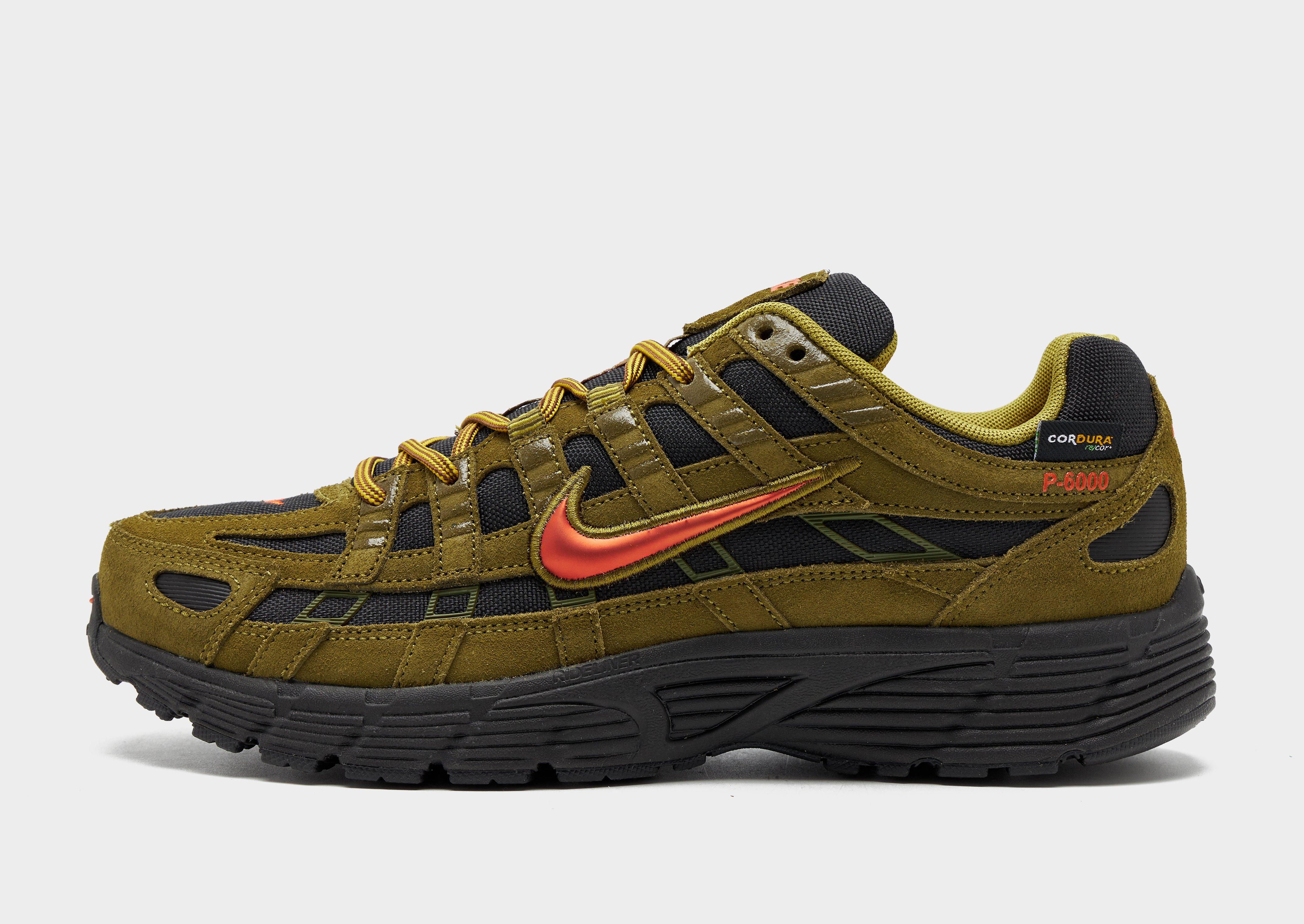Rep retro, Y2K running style with these men's P-6000 shoes from Nike. In a Olive colourway with Red details, these 2000s inspired sneakers have a multilayered upper with airy mesh, leather and synthetic materials. This rendition is updated with CORDURA® fabric for extra durability. They feature a tonal lace fastening with soft padding around the ankle collar for a locked-in fit, and sit atop a spongy cushioned insole for all-day comfort. They have a tough rubber outsole for grippy traction, and are finished with signature Swoosh branding throughout. Style Code: IH0946-300