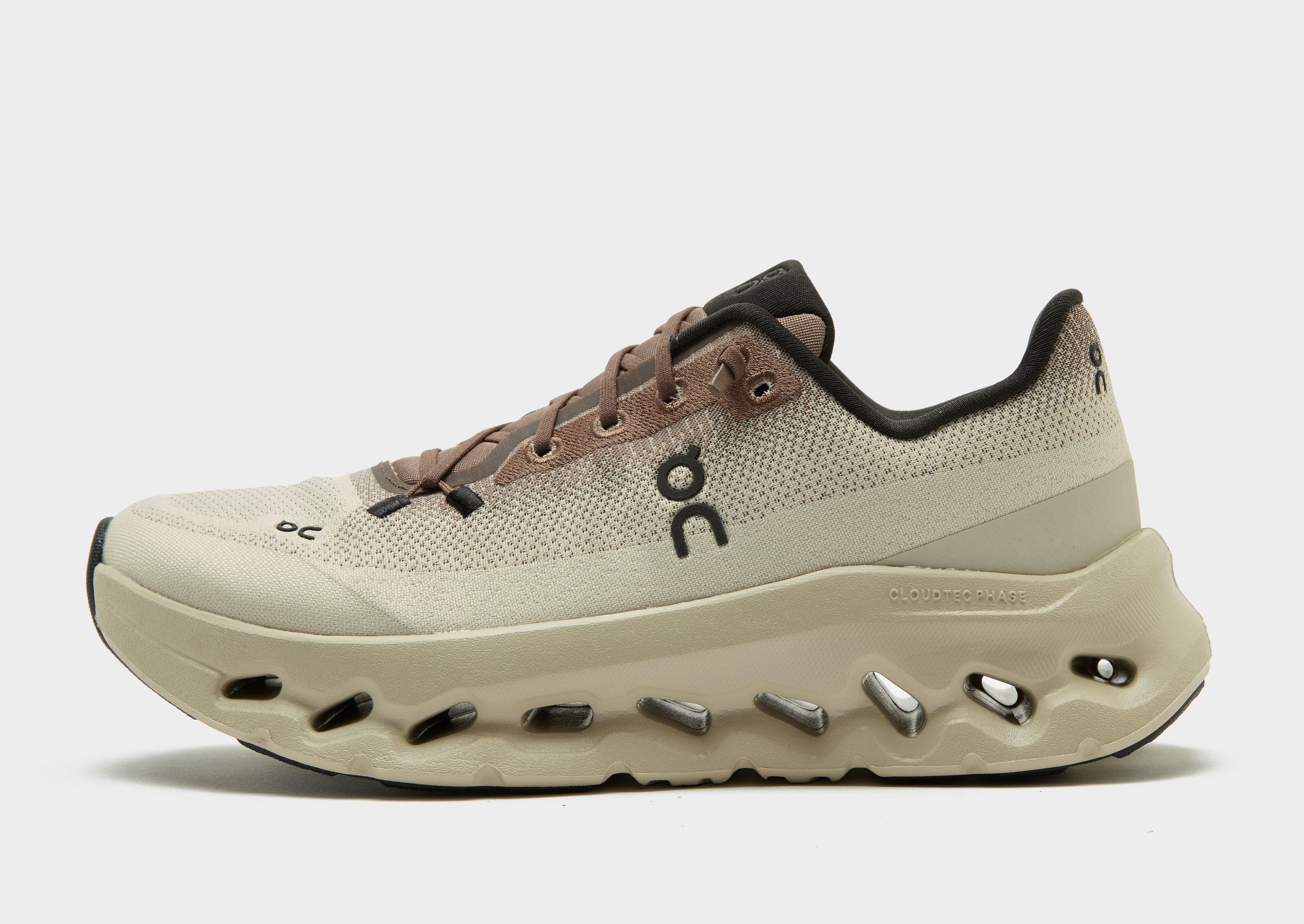 Go for miles with these women's Cloudtilt trainers from On Running. In a Clove and Sand colourway, these Swiss-engineered runners have a breathable mesh upper with synthetic overlays for cool comfort. They feature a sock construction and speed laces for easy on-and-off, with a padded ankle collar for extra support. Underfoot, Helion superfoam provides lightweight cushioning, while CloudTec Phase offers seamless weight transfer. Sat on a grippy rubber outsole for total traction, they're signed off with On Running branding throughout.