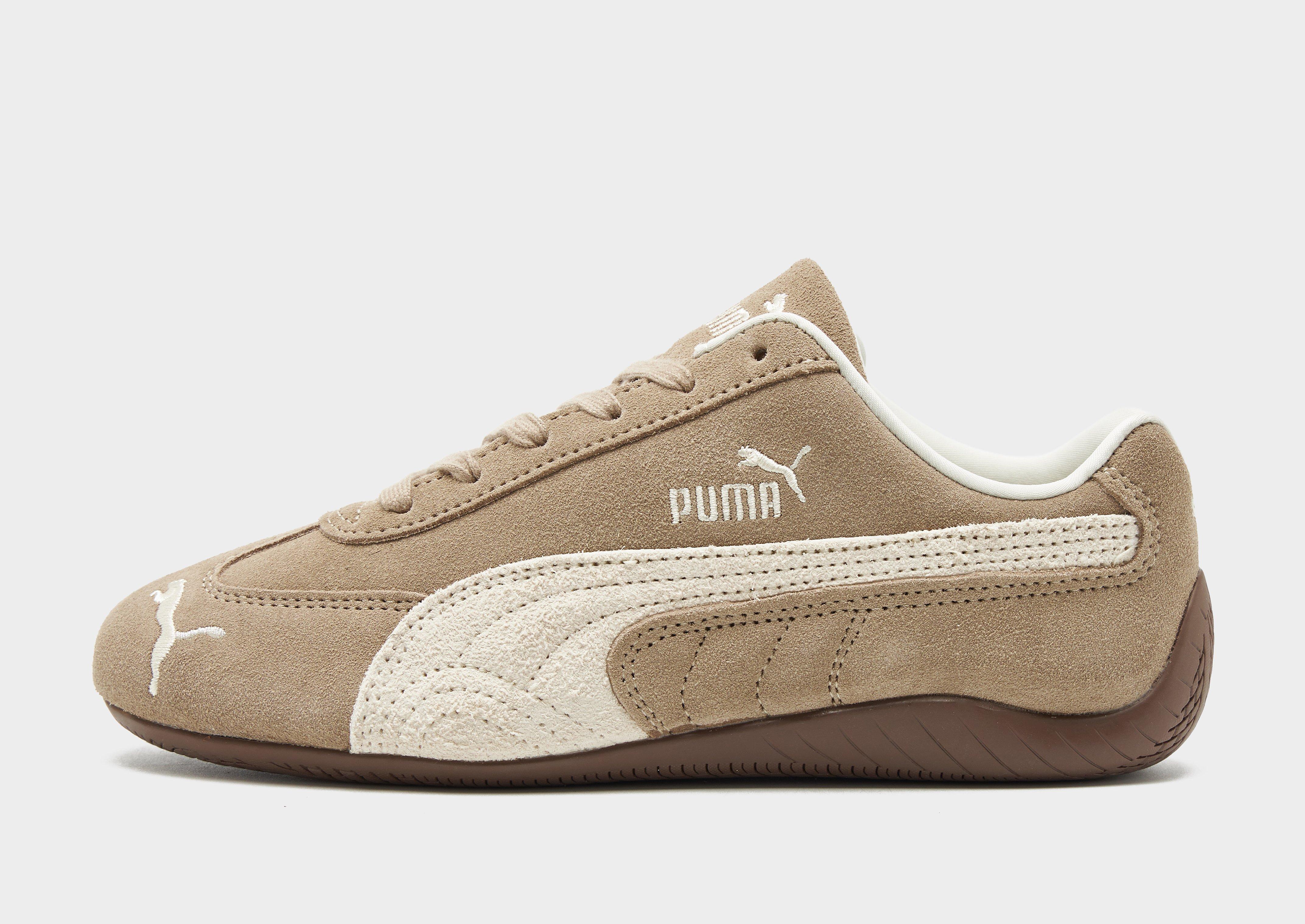 The iconic silhouette returns with the women's Speedcat OG sneaker from Puma. Landing in a Light Brown colourway with Cream details, this JD-exclusive low profile silhouette is paired with sleek details inspired by motorsport racing. The shoe's popularity has taken it from motor racing to the fashion world, with its vibrant colours and easy to wear design making it a must-have staple for your sneaker rotation. Crafted from a leather upper for an elevated look, a rubber outsole underneath provides traction. Finished off with the signature PUMA formstrip to the and gold foil branding to the sidewalls, and the iconic PUMA silhouette embroidered to the toebox. Style Code: 40361902