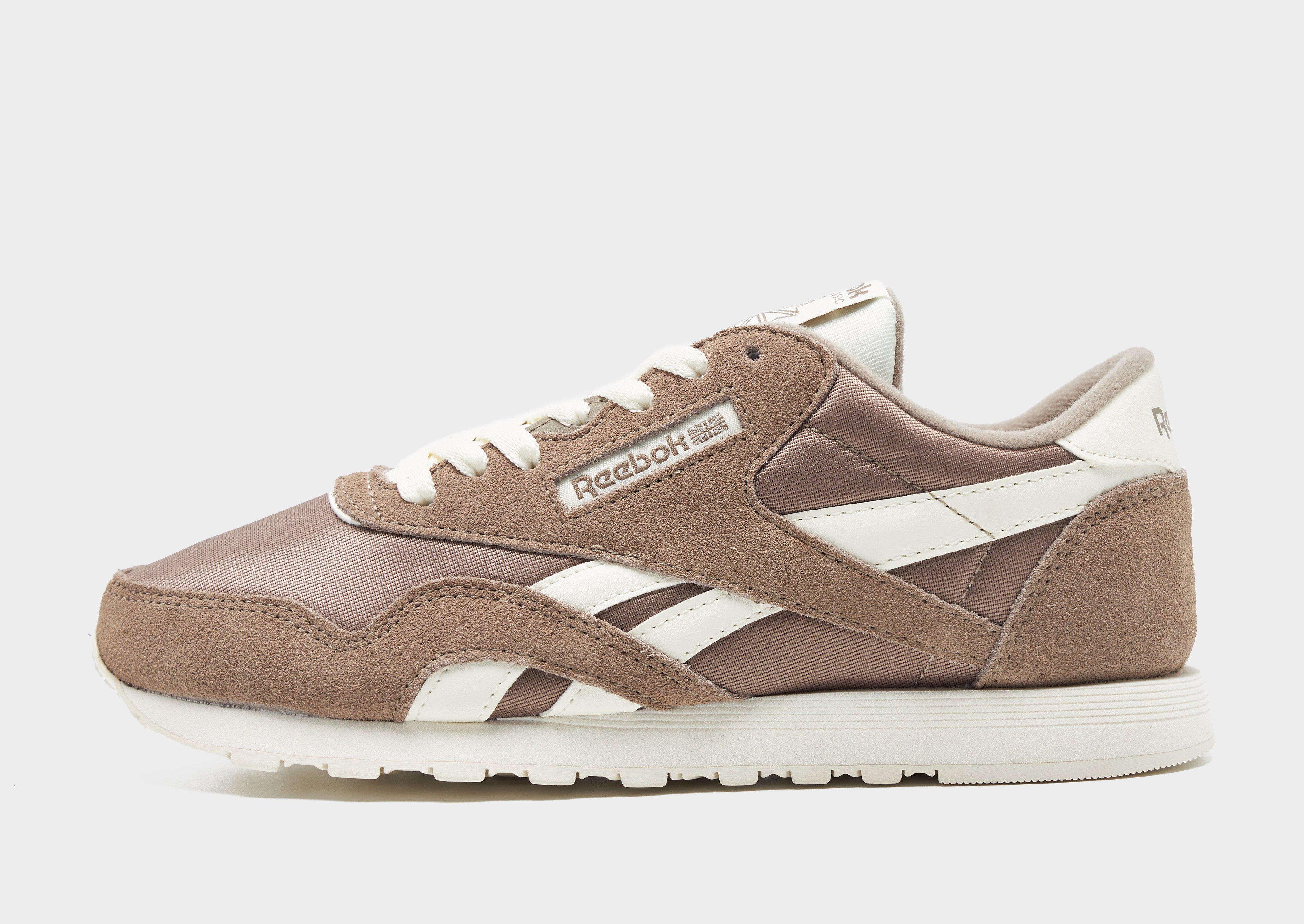 Go classic on your feet with these women's Classic Nylon sneakers from Reebok. In a Brown and Cream colourway, these sneaks are cut from light and breathable nylon, with smooth suede overlays. They feature a lace fastening to lock you in, with a padded collar for support. Underfoot, they sit on a soft foam midsole for a smooth ride, with a grippy rubber outsole for firm traction. Signed off with classic Reebok branding.