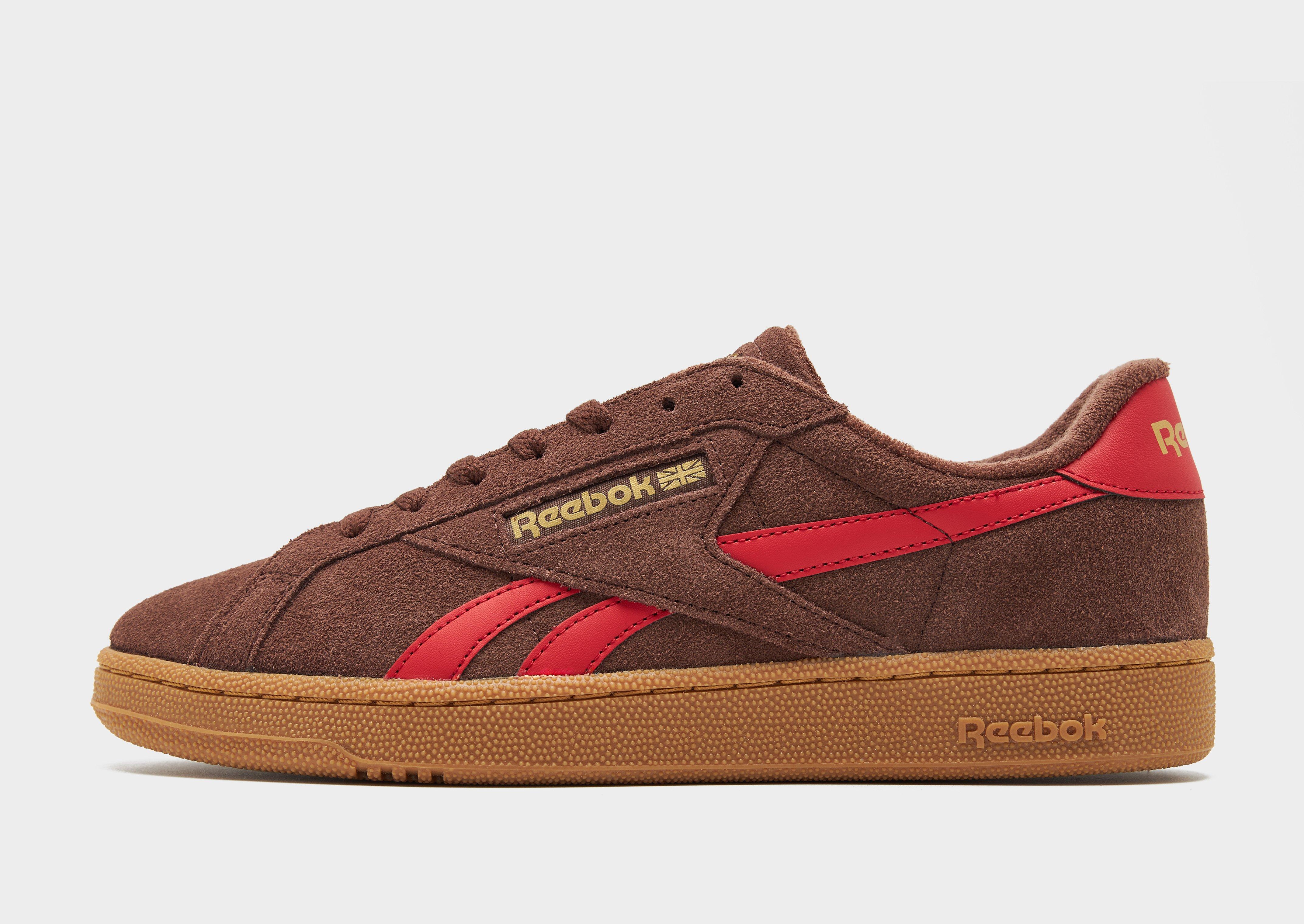Lace up in a classic style with these men's Club C UK shoes from Reebok. In a Brown colourway with Red details, these court-inspired sneakers have a crisp leather upper for lasting wear. They have a tonal lace fastening with plush padding around the ankle collar for a secure fit, and sit above a lightweight cushioned midsole for all-day comfort. They have a tough rubber outsole to keep you gripped, and are finished with signature Reebok branding throughout. Style Code: 100228143