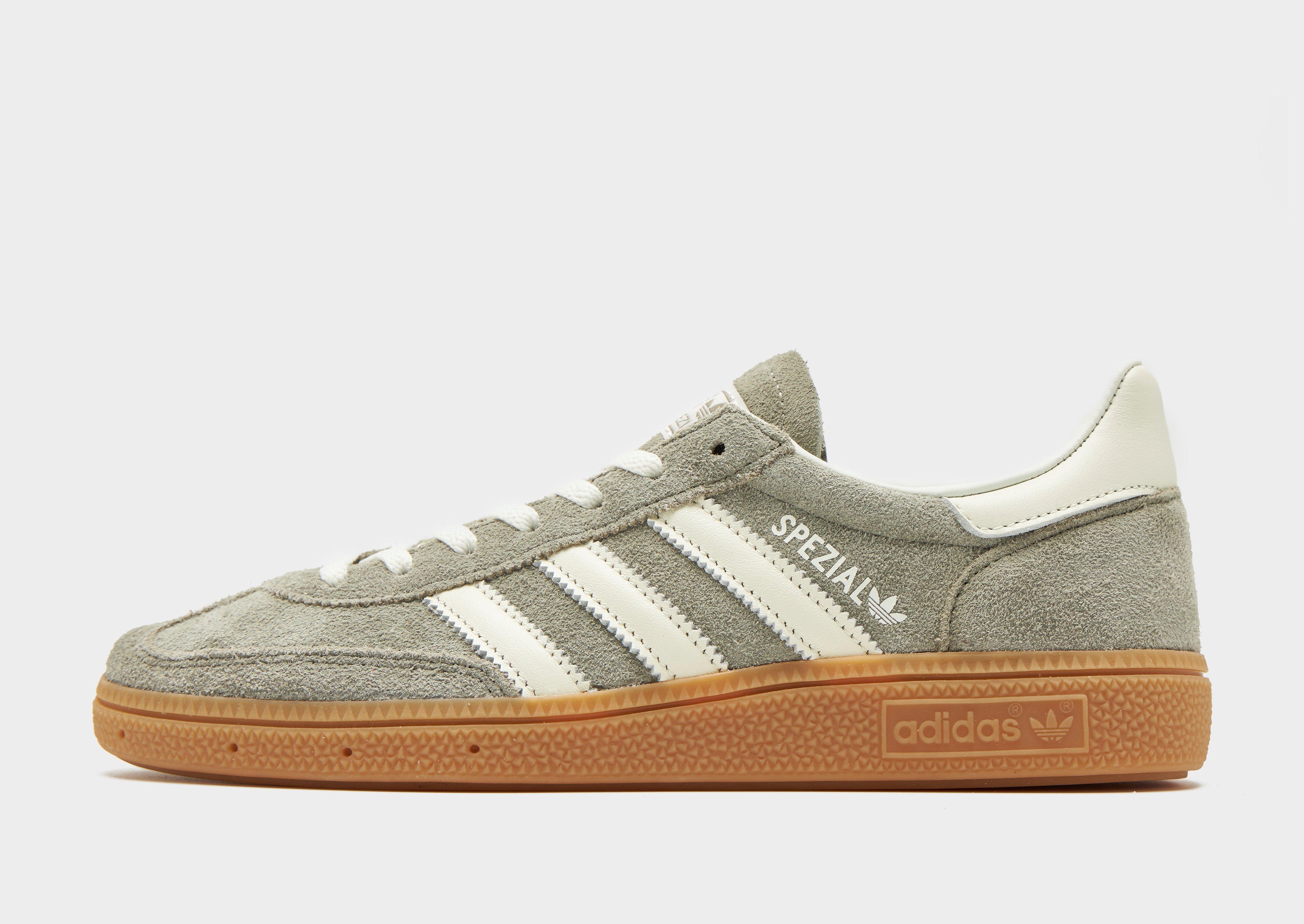 From the terrace to the street, rep a classic look with these women's Handball Spezial trainers from adidas Originals. First introduced in 1979 for the speedy handball courts of Germany, the simple yet stylish silhouette quickly made it a go-to, iconic trainer. Landing in a Silver Pebble colourway, these kicks have an upper made with suede and nylon for durable wear. They feature a lace fastening with a padded ankle collar for locked in fit and sit on a lightweight midsole. With a gum rubber outsole for total traction, they're signed off with the 3-Stripes to the sidewalls.