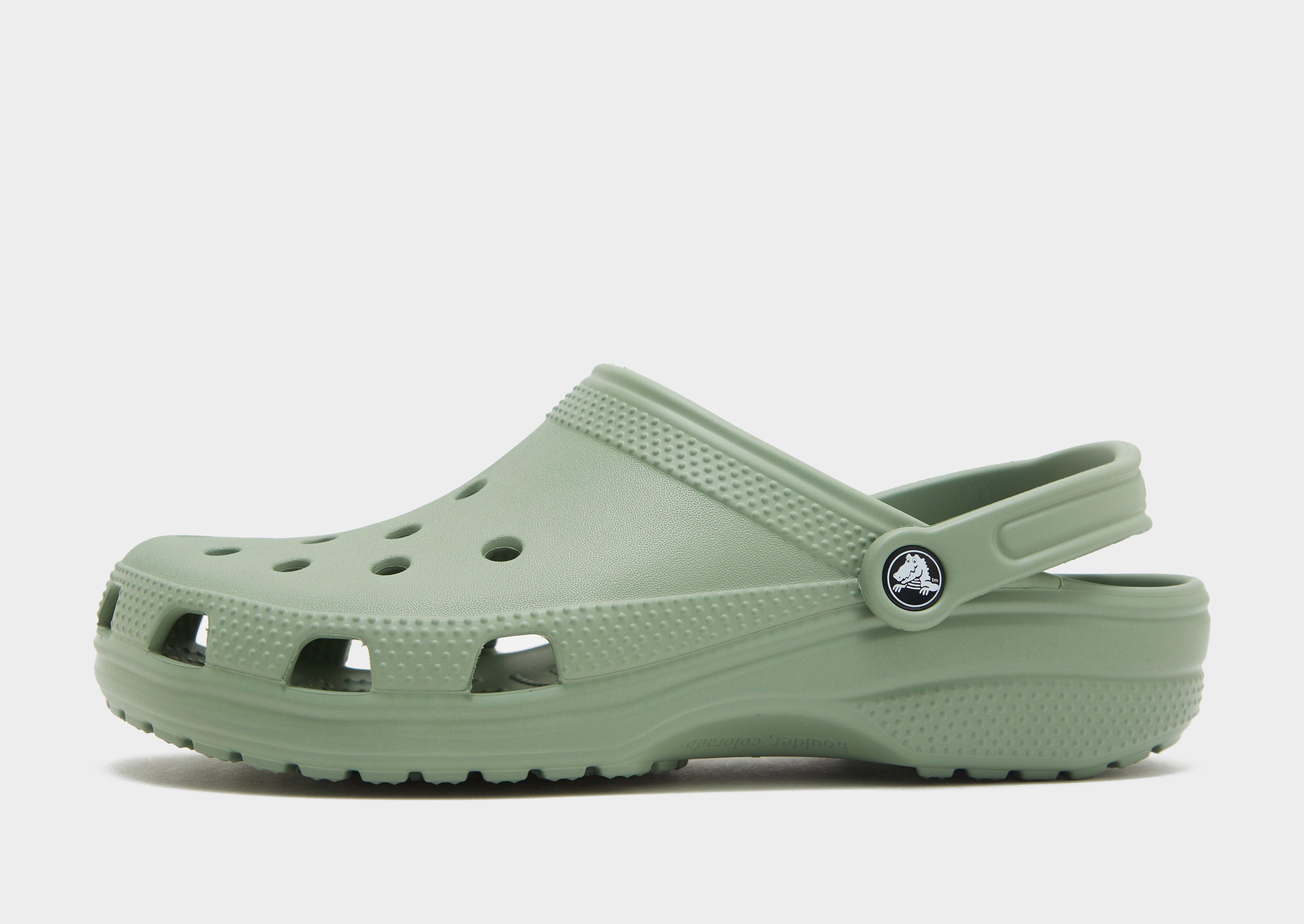 Level up your off-duty rotation with these men's Crocs Classic Clogs. In a Moss colourway, these laidback slip-ons are made with Crocs' lightweight, durable Croslite material for waterproof wear. They have breathable vent ports, and sit above a spongy foam footbed for supreme comfort. They have an adjustable, pivoted heel strap for a custom feel, and a textured outsole for everyday traction. Finished with signature Crocs branding throughout. Please note: Crocs fit wide. If you have narrow feet, we recommend that you size down. Crocs come with the US size embossed to the sole.