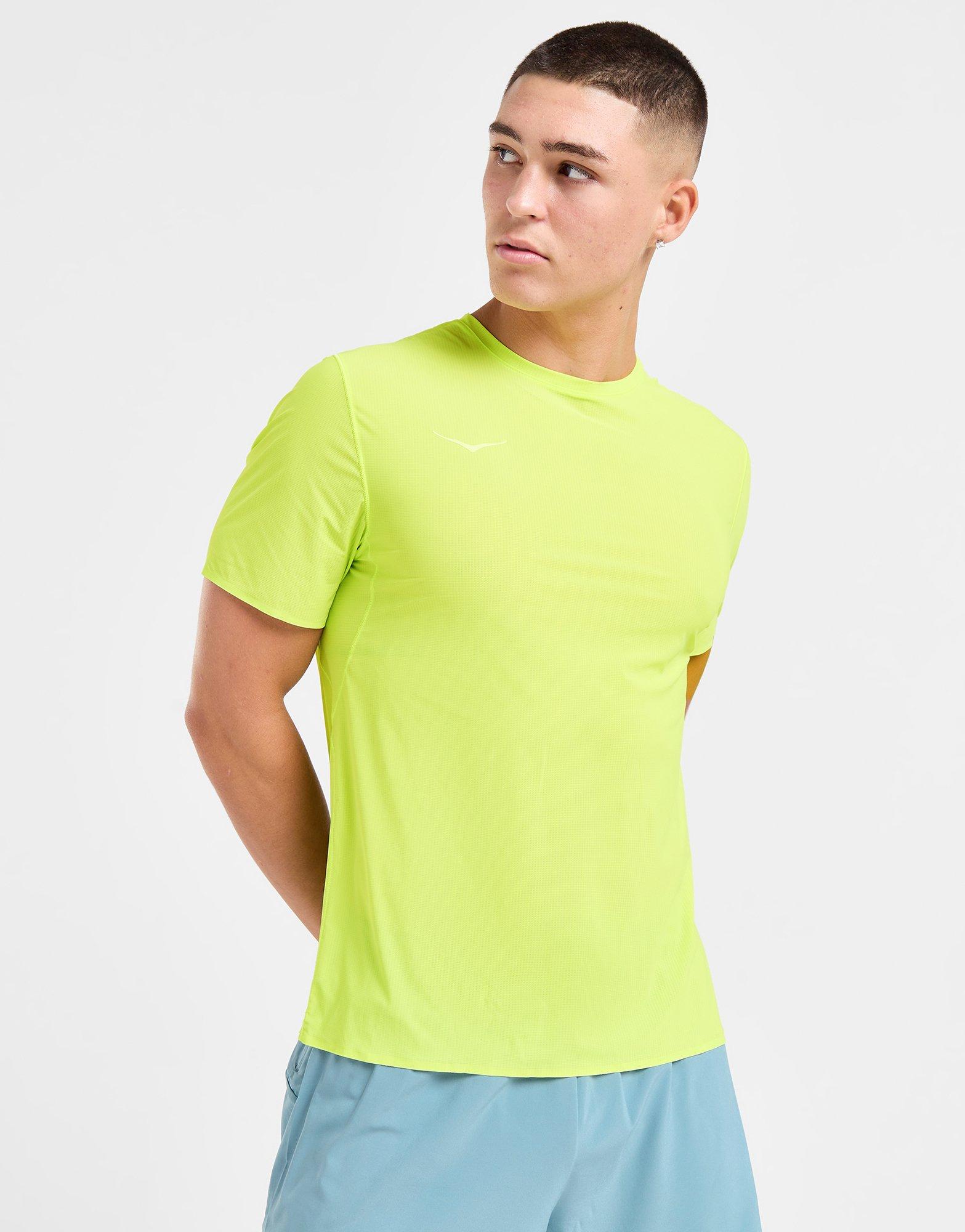 Level up your training essentials with this men's Airolite Run T-Shirt from HOKA. In a Lettuce colourway, this streamlined tee is made with smooth, stretchy recycled nylon fabric with a breathable pinhole mesh design for airy comfort. With a quick-drying feel, it features a classic crew neckline and short sleeves, and is signed off with the iconic HOKA logo at the chest. Machine washable. | Our model is 5'11.5" with a 38" chest and wears a size medium.