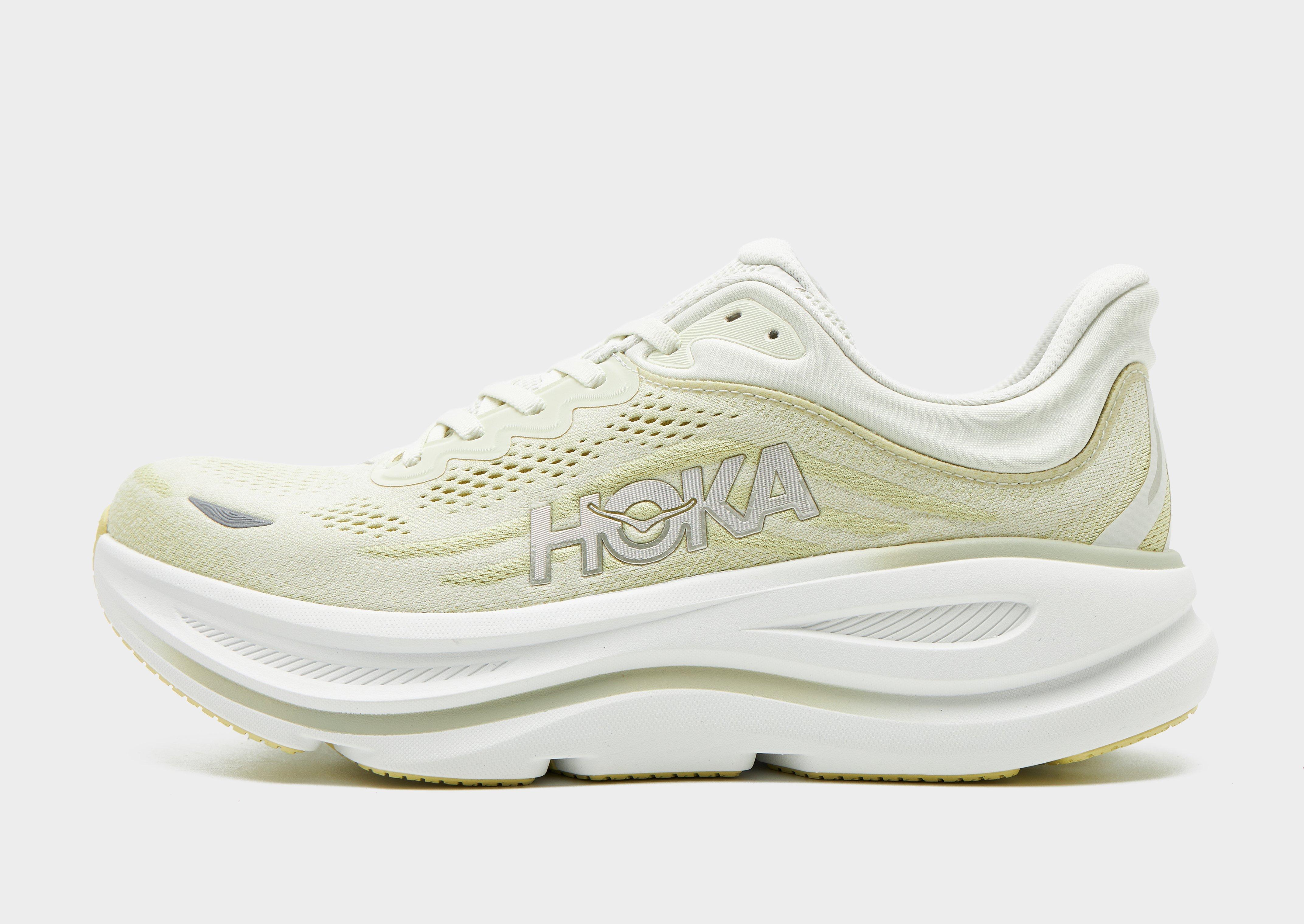 Make every mile count with these men's Bondi 9 running shoes from Hoka. In an Olive colourway with Off-White details, these runners are cut from light, breathable mesh in the upper that includes 50% recycled polyester. They feature a lace fastening to lock you in, with a padded collar for added support and an Ortholite sockliner for a snug fit. Underfoot, they sit on a chunky foam midsole for a smooth ride, with a grippy rubber outsole for traction. With heel tabs for easy on-and-off, they're finished up with classic Hoka branding. Style Code: 1162011-TMM