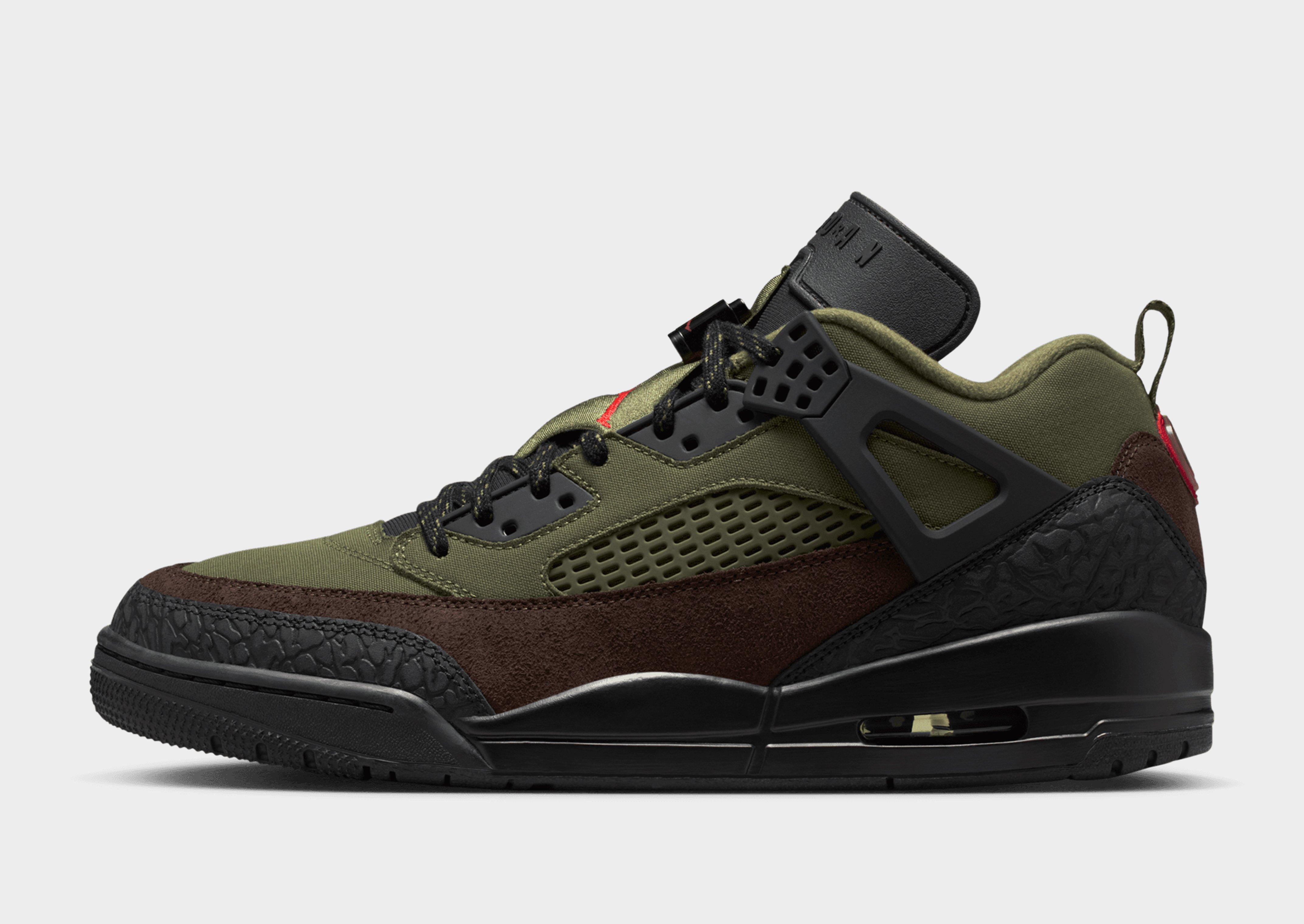 A combo of five classic J's. These men's Spizike Low sneakers from Jordan land in Medium Olive. They've got a smooth canvas upper with a suede mudguard. Soft, bouncy Nike Air tech underfoot. And a grippy rubber outsole. Sorted. Finished with signature Jordan branding.