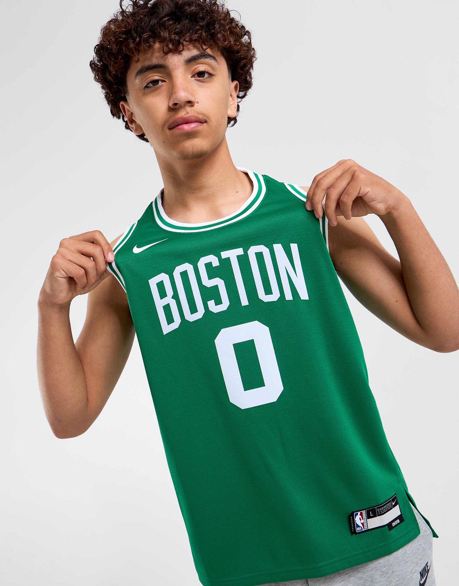 Play like your idol on the court with this junior's NBA Boston Celtics Tatum #0 Jersey from Nike. In a Green colourway, this jersey is made from lightweight and breathable polyester fabric. Packed with sweat-wicking Dri-FIT tech for cool comfort, it features a classic ribbed trims and a slightly dropped rear hem. Finished off with the Swoosh, NBA badge on Boston branding to the front, while Jayson Tatum's name and number is printed to the back.