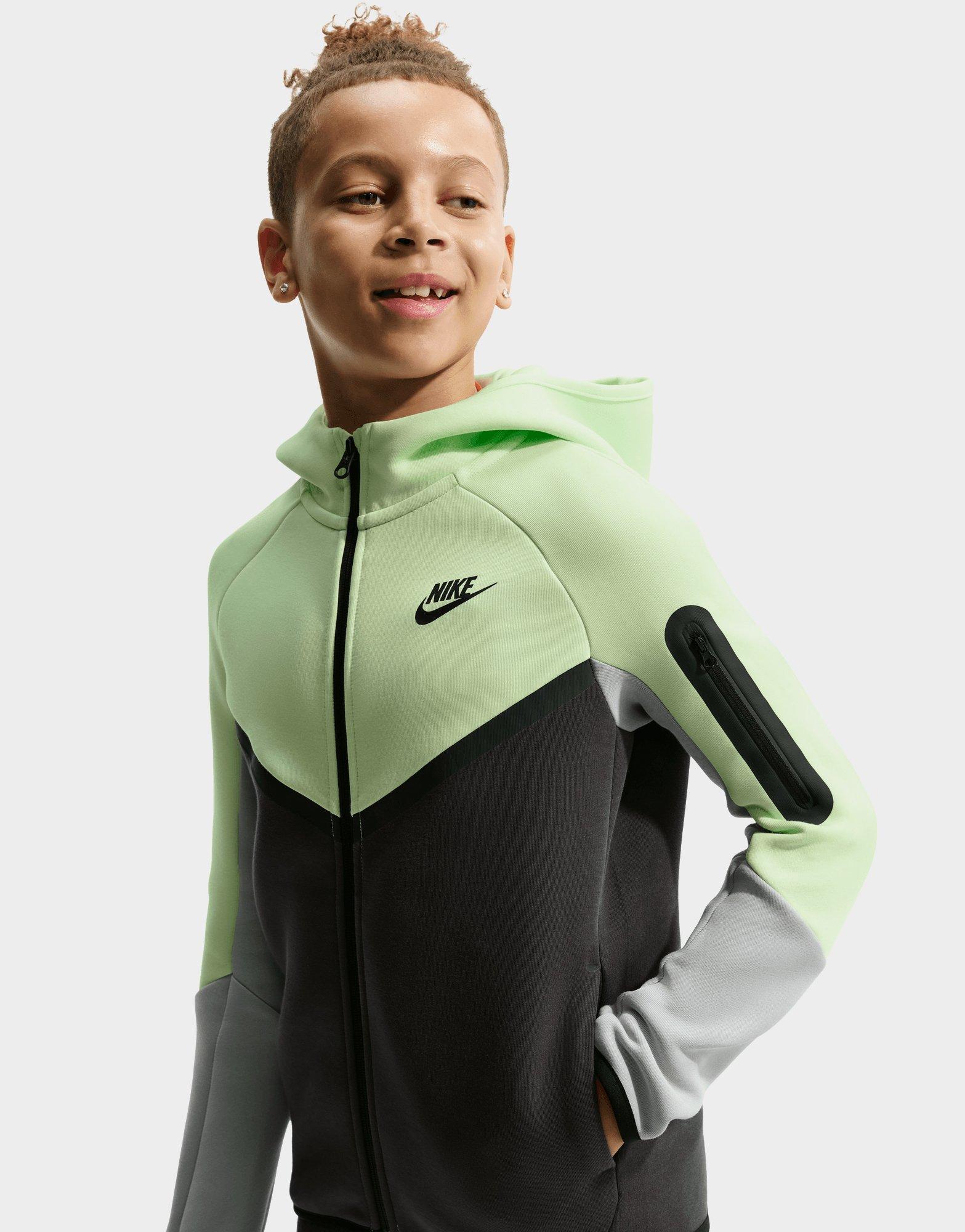 Keep juniors warm with the Nike Tech Fleece Hoodie in lime green. Standard fit with long sleeves and ribbed cuffs ensures comfort and secure wear. Full-zip design is perfect for layering over tees during training or casual days. Style Code: HV5867-361