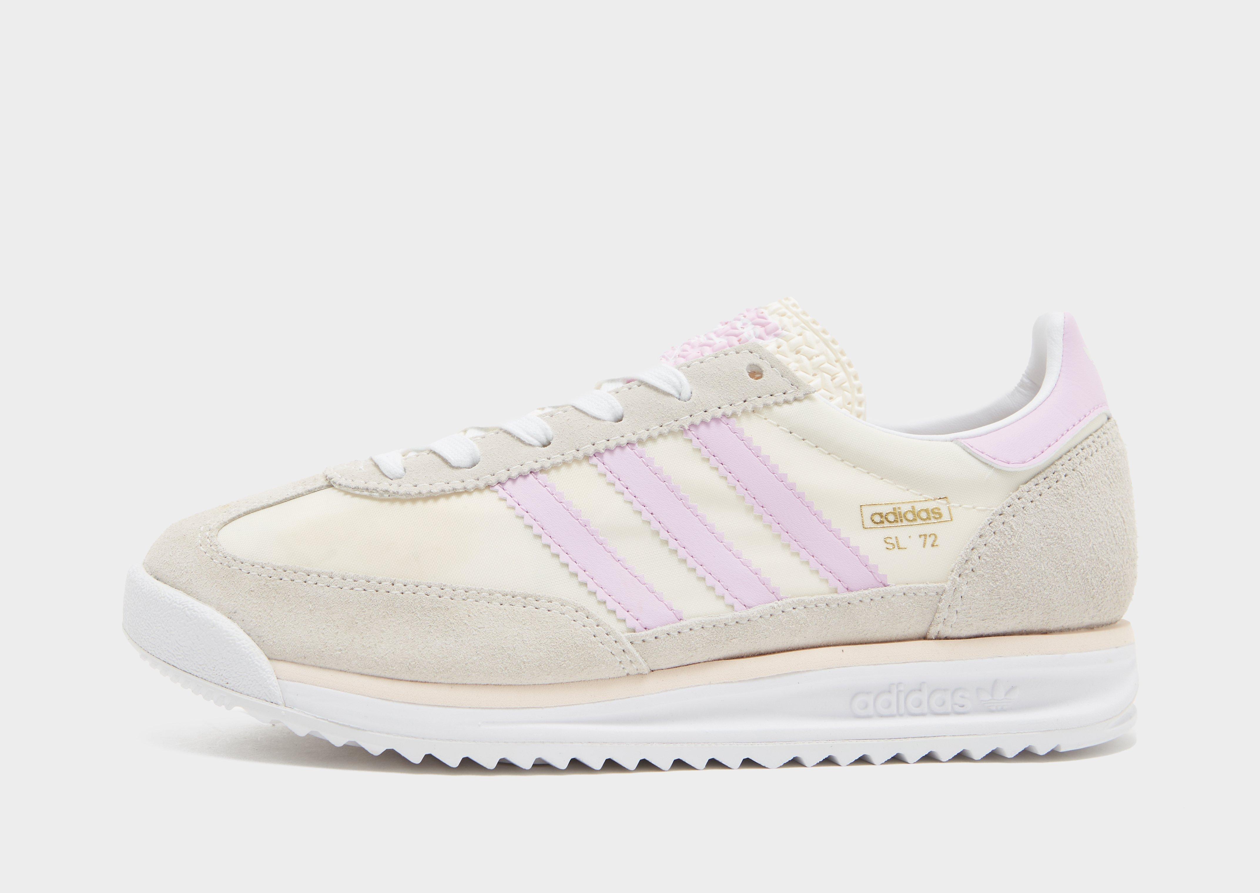 Remastered style lands with these juniors' SL 72 RS trainers from adidas Originals. In a Chalk White and Wonder Quartz colourway, these updated classics mix nylon and suede panels to the upper. They're sat on a streamlined EVA midsole for a super light ride, while the serrated rubber tread nods back to the original. Finished off with Bliss Lilac 3-Stripes and the Trefoil, as well as Gold SL 72 branding. | JP9659