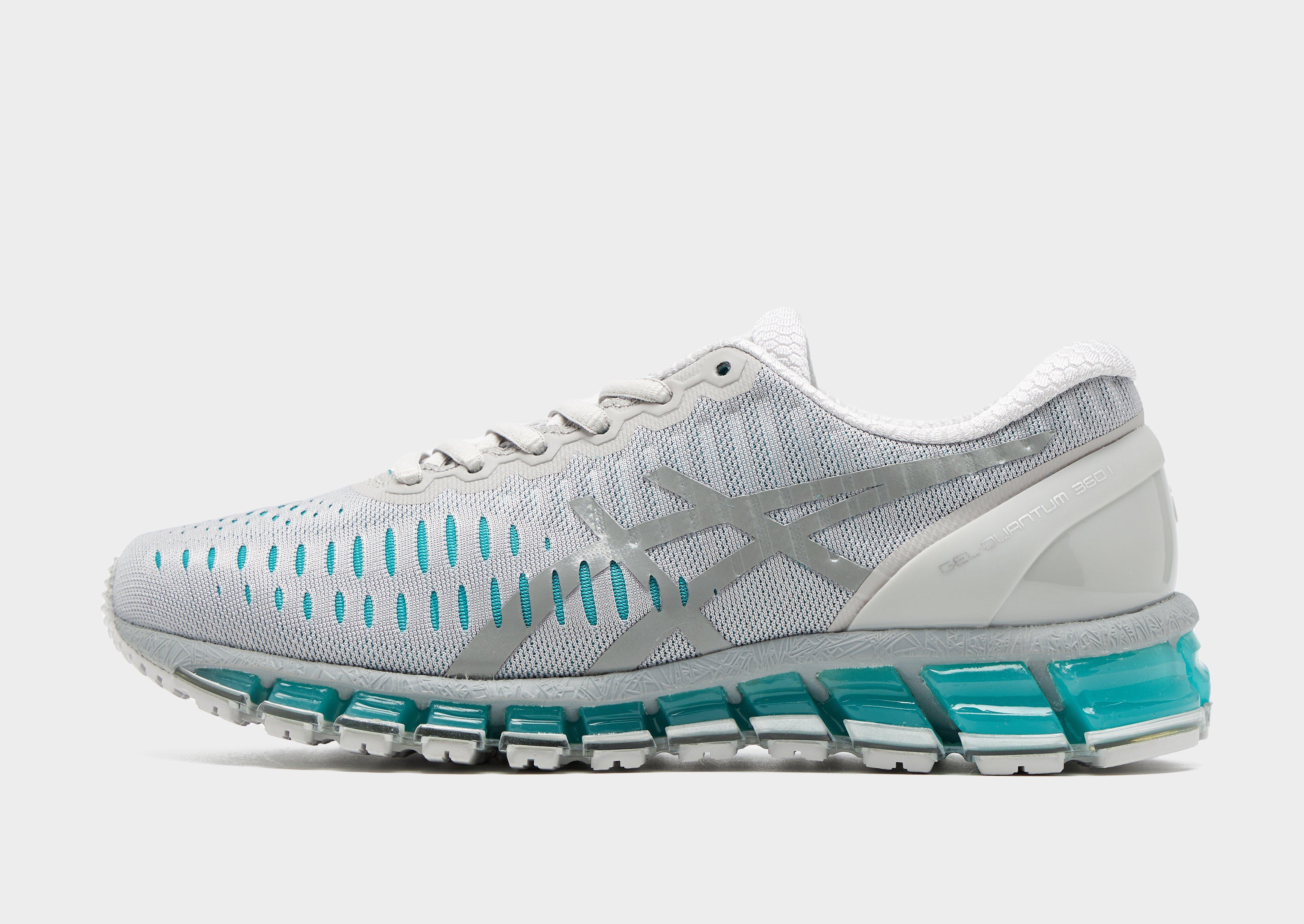 Celebrate 10 years of the Gel Quantum with these women's Gel Quantum 360 I shoes from ASICS. Landing in a sleek Grey colourway with Aqua Blue details, these sneakers are constructed with a breathable, knit upper, and a lace-up closure, while its SCUTOID shape allows you to move more naturally during everyday scenarios. 360-degrees of GEL technology in the midsole creates better shock absorption underfoot, while FlyteFoam cushioning in the heel gives better rearfoot shock absorption. Finished with signature ASICS branding throughout. Style Code: 1203A955.020W
