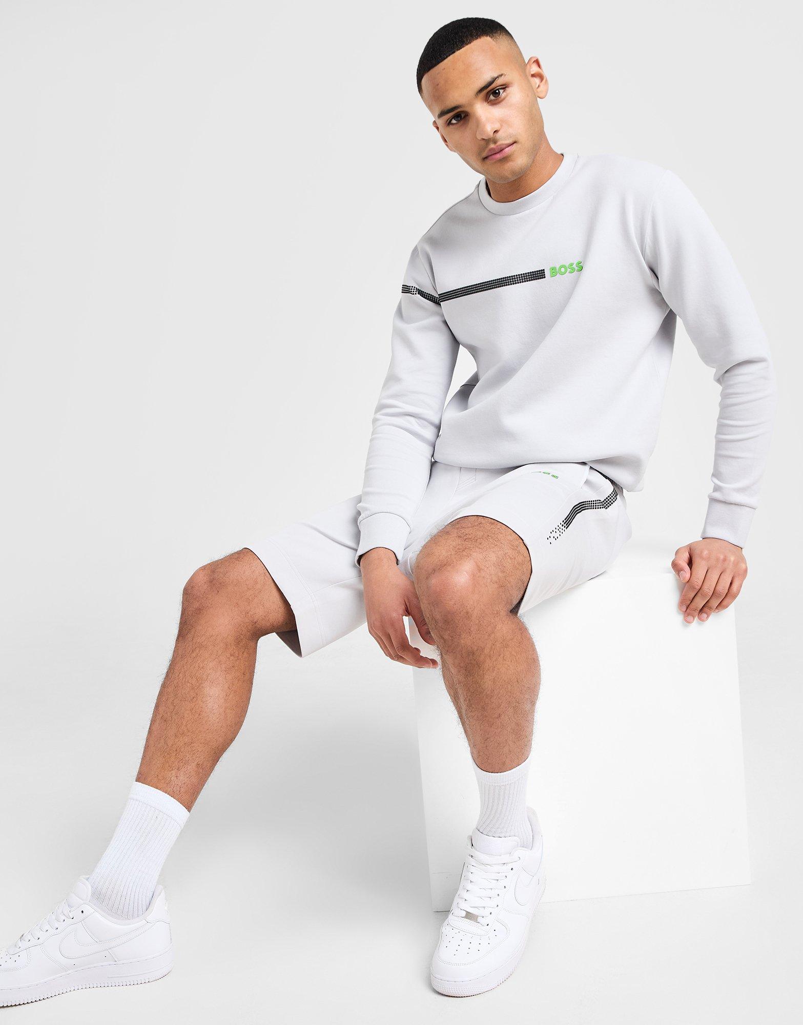 Add a premium touch to your laidback looks with this men's Salbo Pixel Sweatshirt from BOSS. In a Light Grey colourway, this relaxed-fit sweatshirt is made with soft, thick cotton for lasting comfort. It features a classic crew neckline and long sleeves for an easy feel, and stretchy ribbed trims to secure the fit. Finished with a pixel-style strip across the chest and a contrast BOSS wordmark logo. Machine washable. | Our model is 6'1" with 38" chest and wears a size M.