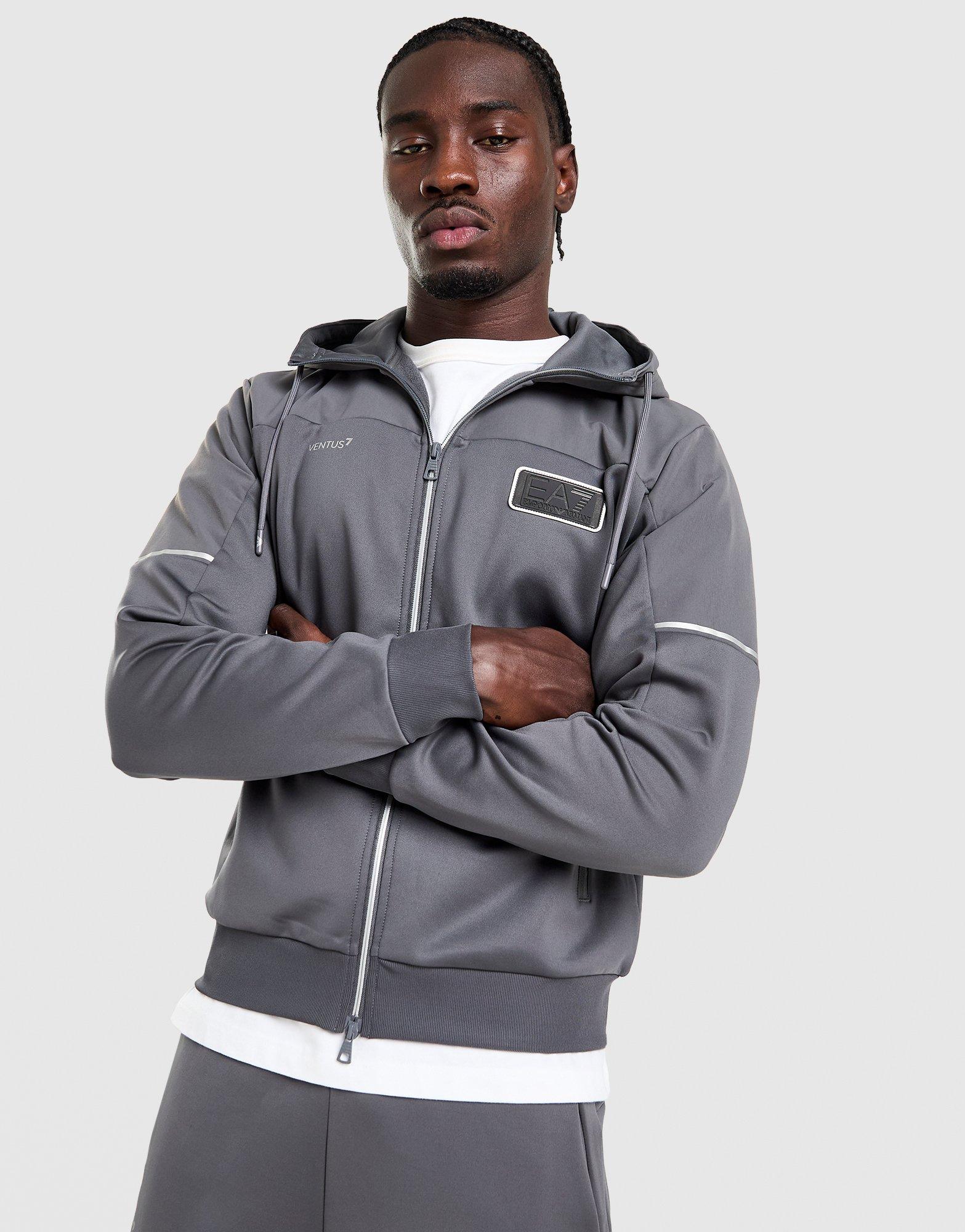 Take your layers up a level with EA7 Emporio Armani. This men's Natural VENTUS7 Full Zip Hoodie lands in Iron grey. Natural VENTUS7 technical fabric feels smooth, lightweight, and warm. The zipper and hood gives you extra cover. Ribbed trims hold the fit. Finished up with signature logos on the chest. Machine washable. | Our model is 6'1" with a 36" chest and wears a size M.