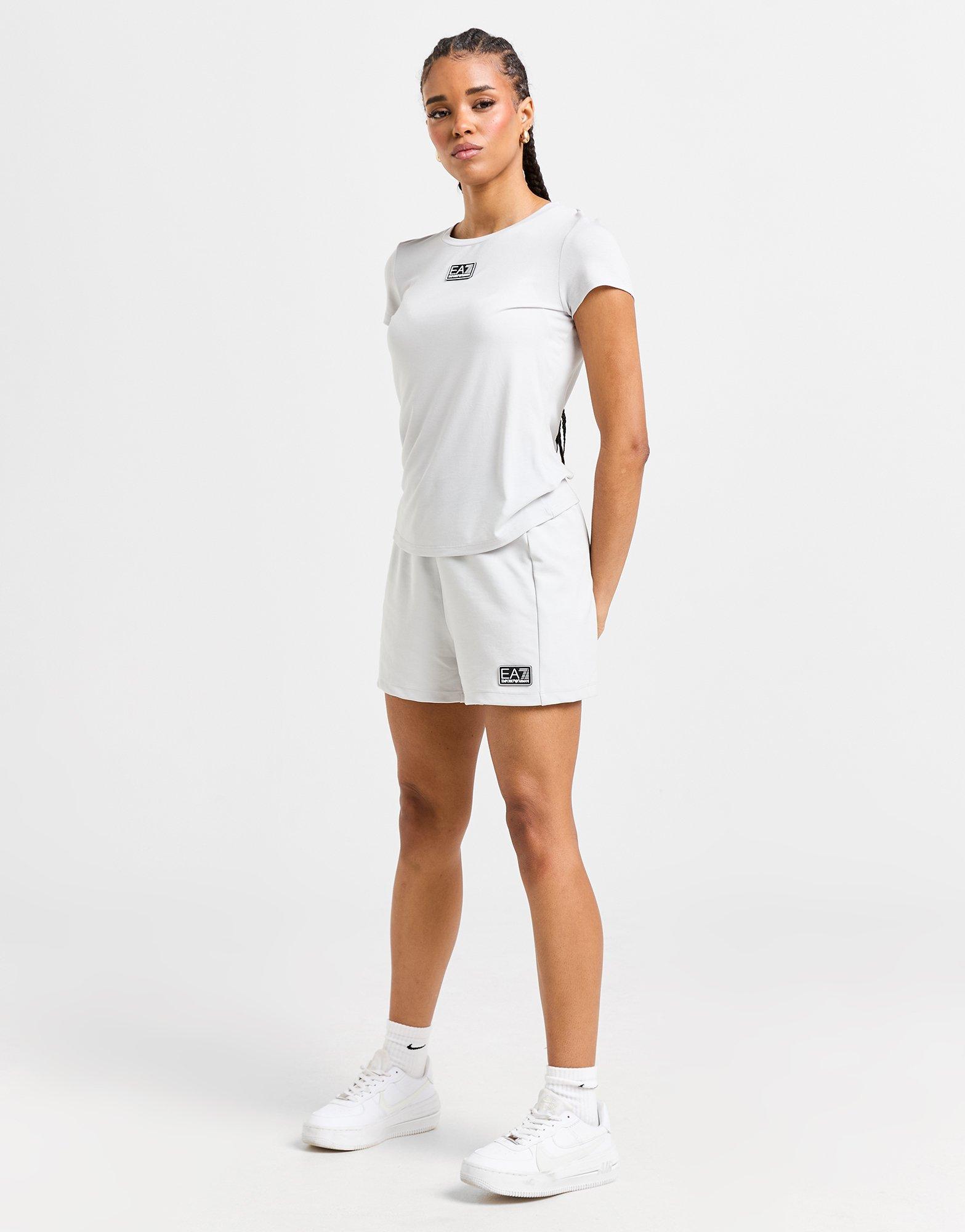 Keep cool with these women's Ventus Tape Shorts from EA7 Emporio Armani. In a Grey colourway, these standard fit shorts are cut from smooth polyester fabric with VENTUS7 tech to remove sweat. They have an elasticated waistband for a relaxed fit, with side pockets for storage. Finished up with EA7 branding to the leg. Machine washable | Our model is 5'6" and wears a size small.