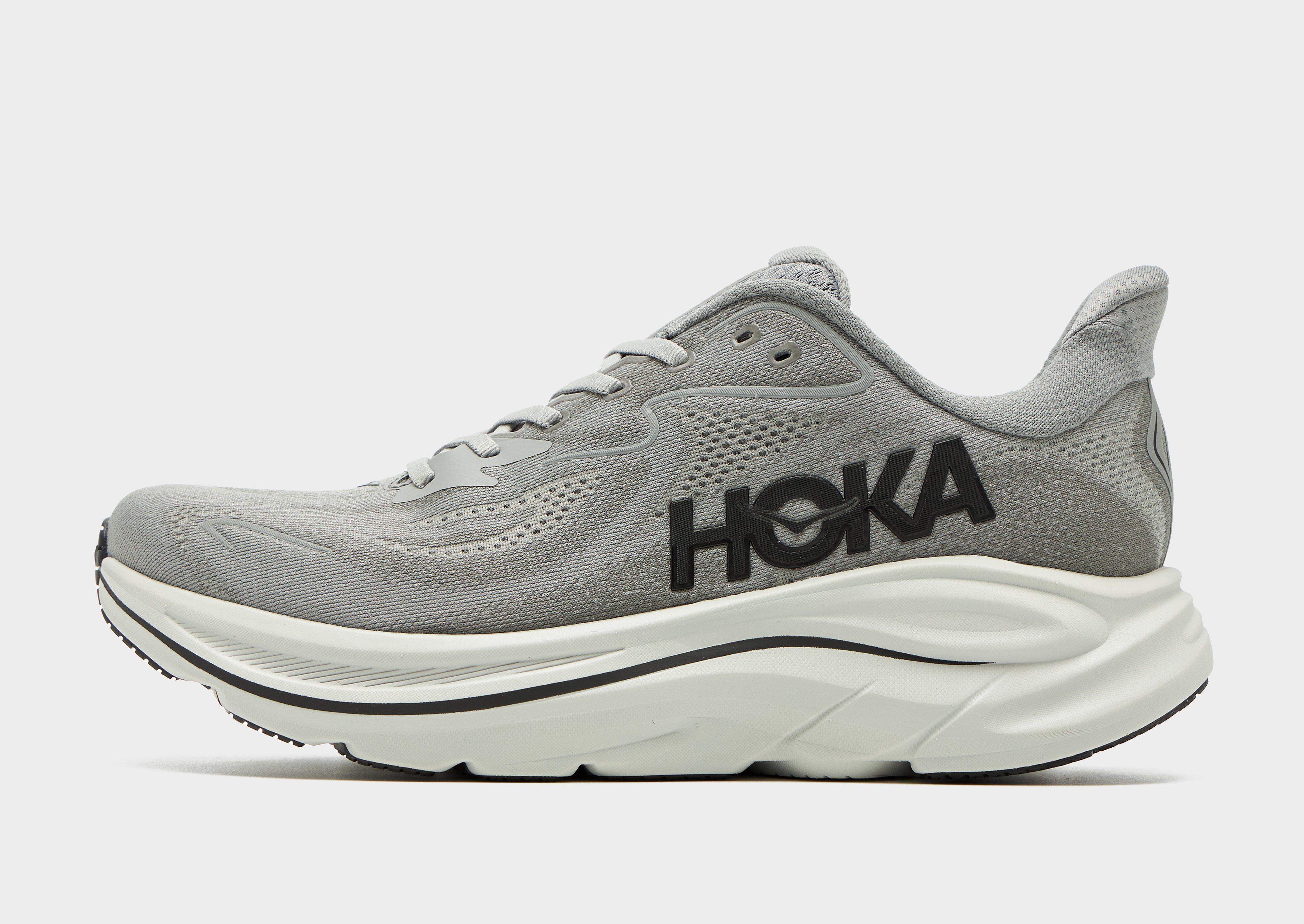An iconic runner meets its 10th generation with these men's Clifton 10 running shoes from HOKA. In a Grey colourway with Black details, these runners are the lightest and most cushioned Clifton to date. They have a breathable, engineered knit upper and feature a gusseted tongue and a recycled lace up fastening to lock you in. Adding 3mm in stack height, these all-new sneakers are equipped with responsive, compression molded foam underfoot, while an early stage Meta-Rocker keeps the ride smooth. They have a durable rubber outsole and are finished up with signature HOKA branding. Style Code: 1162030-GYST