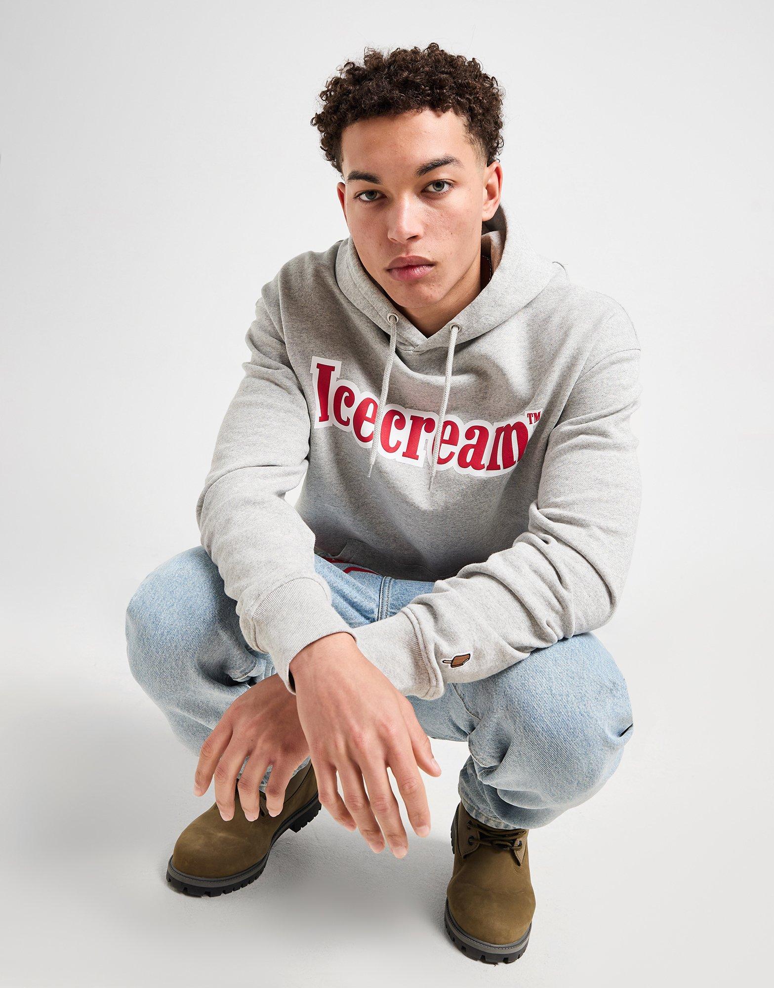 Upgrade your laidback layers with this men's Puff Print Logo Hoodie from ICECREAM. In a Grey colourway, this relaxed-fit hoodie is made with soft, thick cotton for premium comfort. It features an adjustable drawstring through the hood and long sleeves to amp up the coverage, and stretchy ribbed trims to secure the fit. It has a kangaroo pocket up front for quick storage, and is finished with a contrasting ICECREAM logo across the chest. Machine washable. | Our model is 6'0" with a 36" chest and wears a size M.