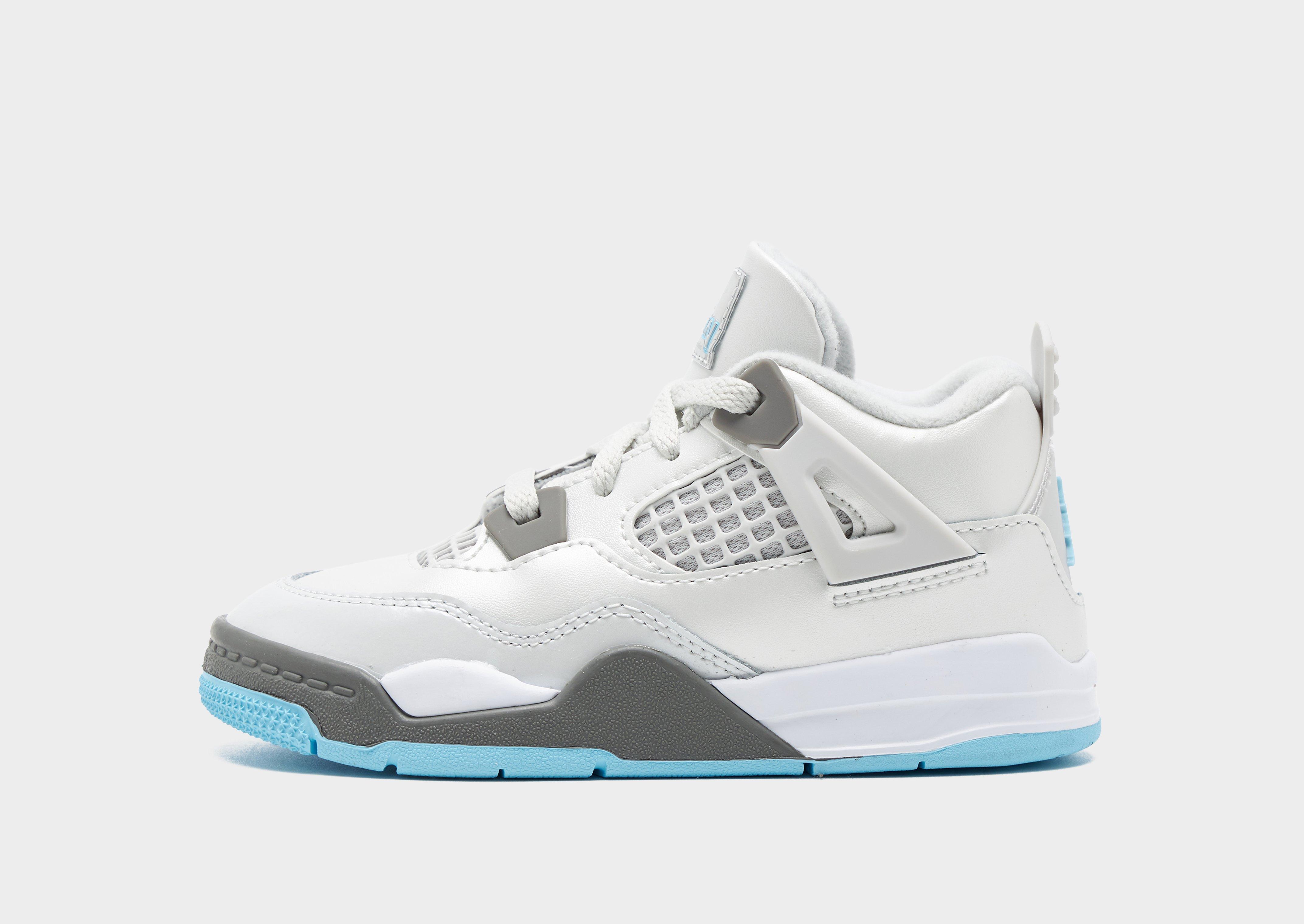 Level up your sneaker rotation with the iconic Air Jordan 4, a symbol of sneaker culture and streetwear fashion. Landing in a Photon Dust colourway with Blue Chill details, these infant's sneakers have a durable canvas upper for a clean and classic look. They feature a lace fastening with a padded ankle collar for a snug, supportive feel. Underfoot is a soft foam midsole with a visible Air-Sole unit to the heel for cushioned comfort with every step. With a paint-splatter pattern to the rubber outsole for a statement style and traction, they're finished up with Jordan branding to the tongue. Style Code: HV4759-014