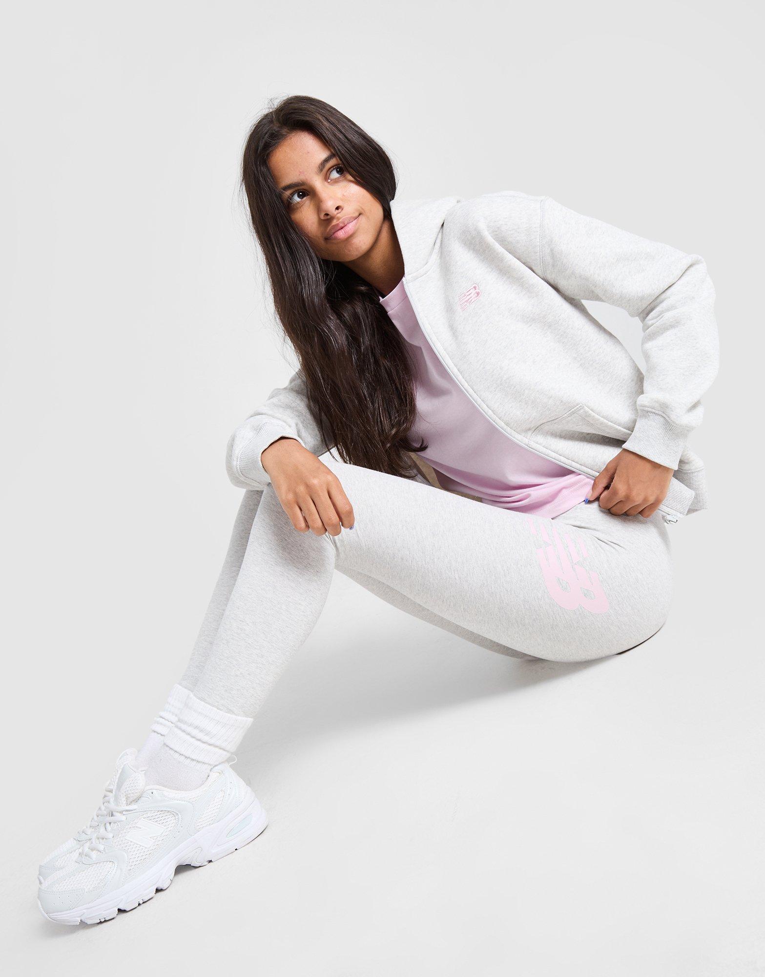 Take it easy on chill days with these junior girls' NB Logo Leggings from New Balance. In a Grey Marl colourway, these slim fit leggings are cut from soft, stretchy fabric for a relaxed wear. They feature an elasticated waistband for a relaxed fit and are finished up with classic Pink NB branding to the leg. Machine washable.