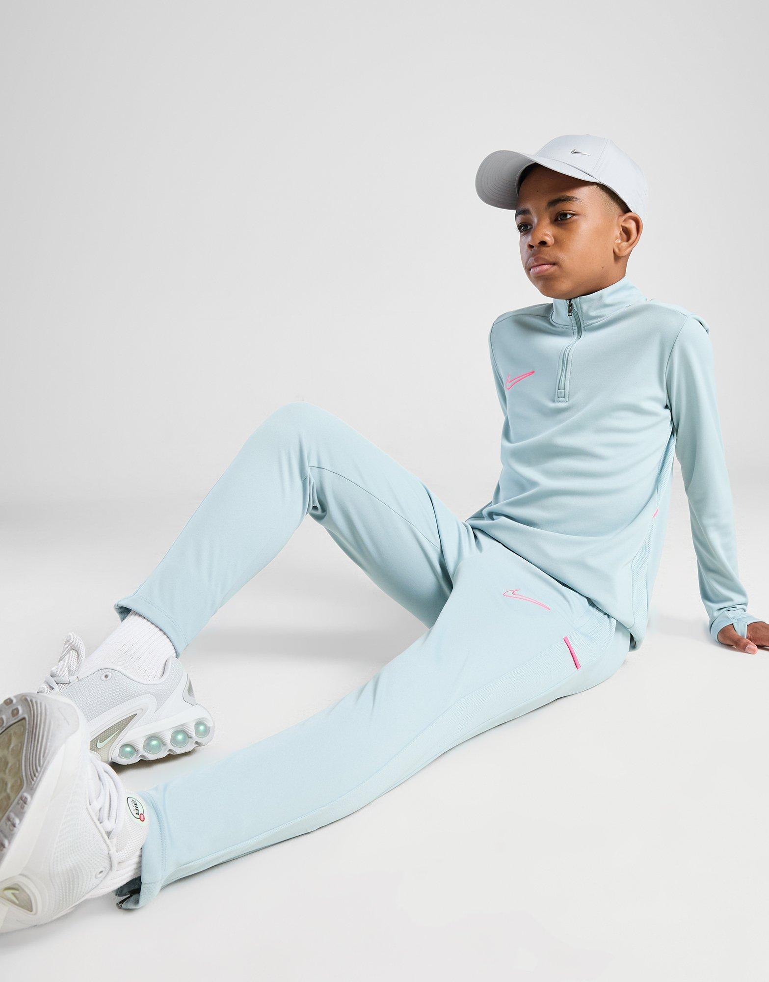 Kicking back or on the pitch, these juniors' Academy Track Pants from Nike have you covered. In an Ocean Cube colourwy, these regular-fit pants are made from smooth polyester knit, with mesh panels and sweat-wicking Dri-FIT tech for cool comfort. They feature a drawcord tie to the elastic waistband and zippered ankles for a custom wear. Finished with zip-fasten side pockets and a Hyper Pink Swoosh. Machine washable.