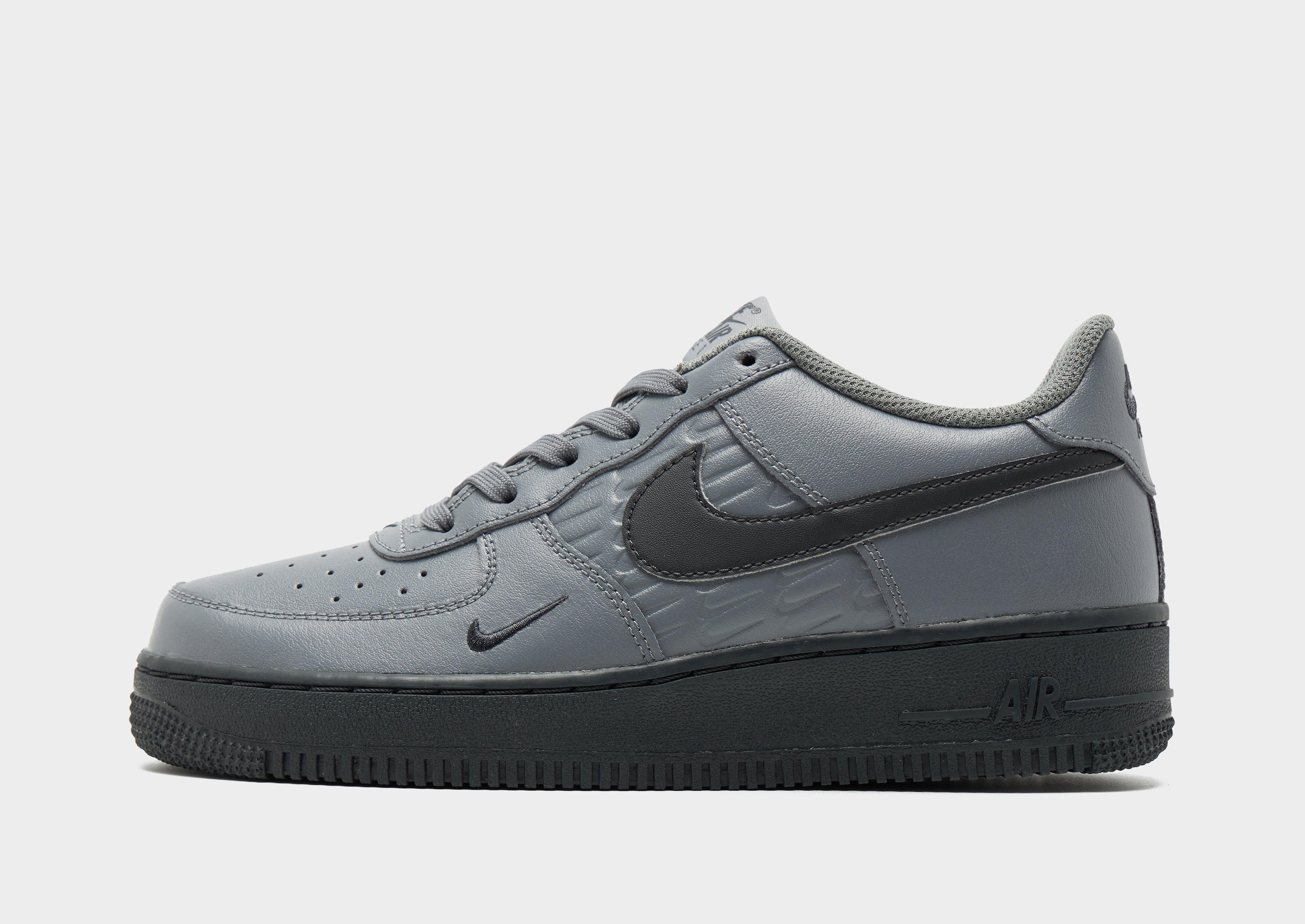 Stand tall in the style stakes with these JD-exclusive junior's Nike Air Force 1 '07 shoes! An instant icon since its 1982 debut, the AF1 was Nike's first basketball sneaker with a full-length Air Sole unit in the midsole. Hugely popular on the hip-hop scene, these Air Force 1 shoes are built with a Grey leather upper for hard-wearing comfort and sat atop the legendary Air Sole unit for optimum impact protection step after step, with pivot points in the outsole to deliver smooth movements from the courts to the streets. The legendary Swoosh finishes things off with authority. Style Code: IH4475-025