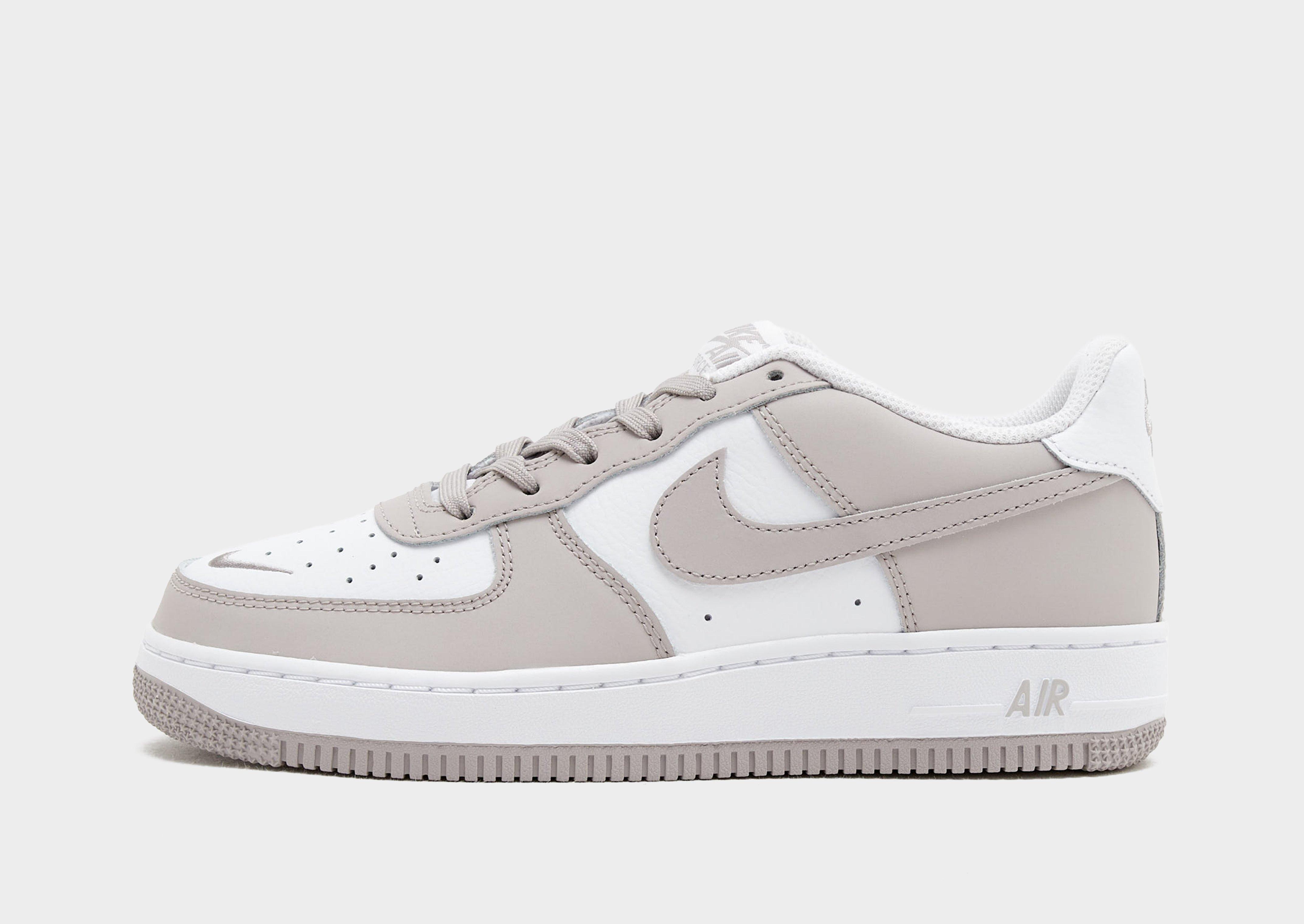 Refresh your tread rotation. These juniors' Air Force 1 sneakers from Nike are exclusive to JD. Cut from smooth leather, they have breathable perforations for ventilation. Soft foam and an Air-Sole unit bring cushioning. While the grippy rubber outsole adds firm traction. They land in College Grey and white with classic Swoosh branding.