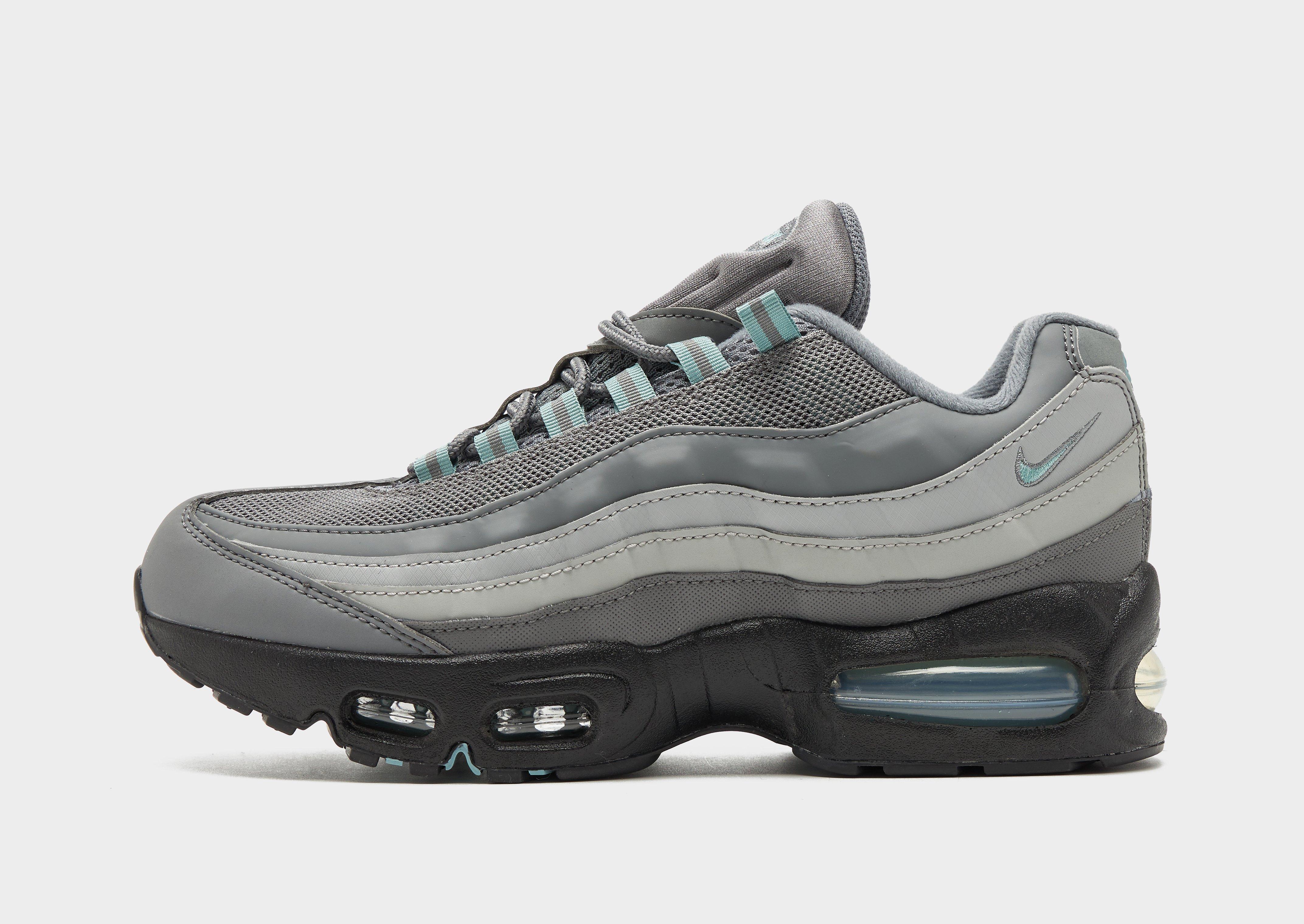 Step out in a Swoosh OG with these junior's Air Max 95 shoes from Nike. Landing in a Grey colourway with Light Blue details, these JD-exclusive sneakers have airy mesh through the upper with real and synthetic leather for lasting wear. With stitched overlays to create the iconic wavy design lines, they have a lace fastening with a low-cut, padded ankle collar for a secure fit. They have visible Air units underfoot to cushion every step, with flex grooves in the midsole for a natural step. They have a tough rubber outsole for grippy traction, and are signed off with iconic Nike branding throughout. Style Code: IM6032-084