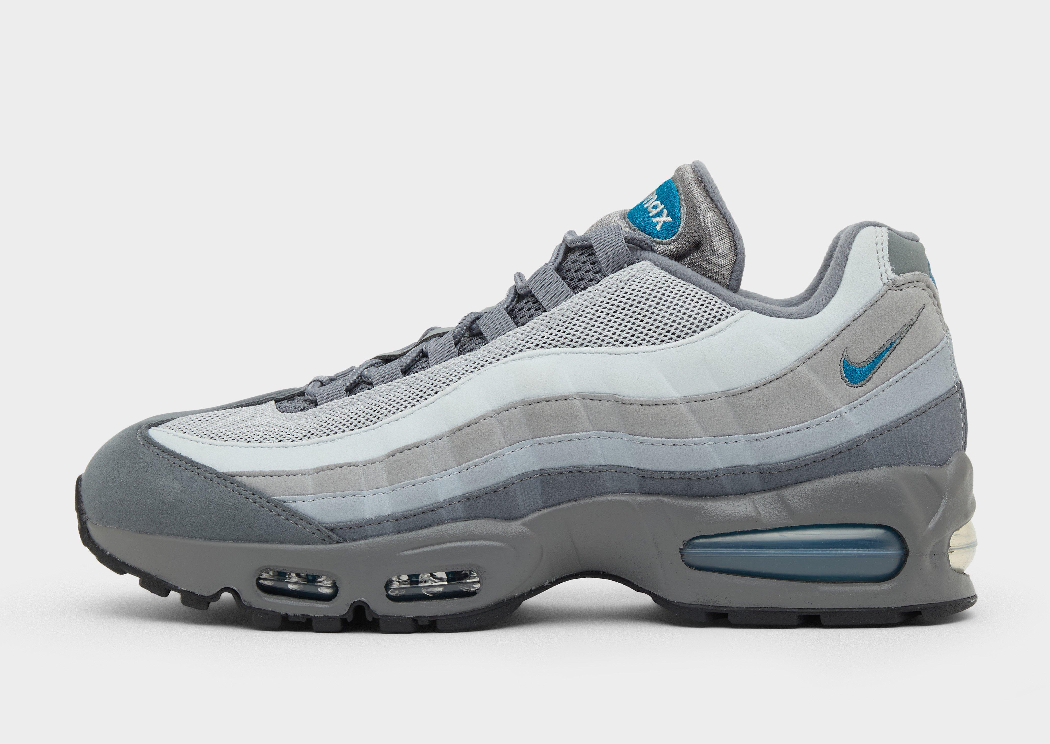 What's better than fresh 95s? A JD-exclusive colourway. Dropping in Smoke Grey Blue, these men's Air Max 95 trainers from Nike have a synthetic leather and textile upper just like the '95 classic. They have a lace up fastening and a tonal midsole underfoot that's packed with Nike's visible Air cushioning for levelled up comfort. Finished with flex grooves in the sole and signature Nike branding throughout.