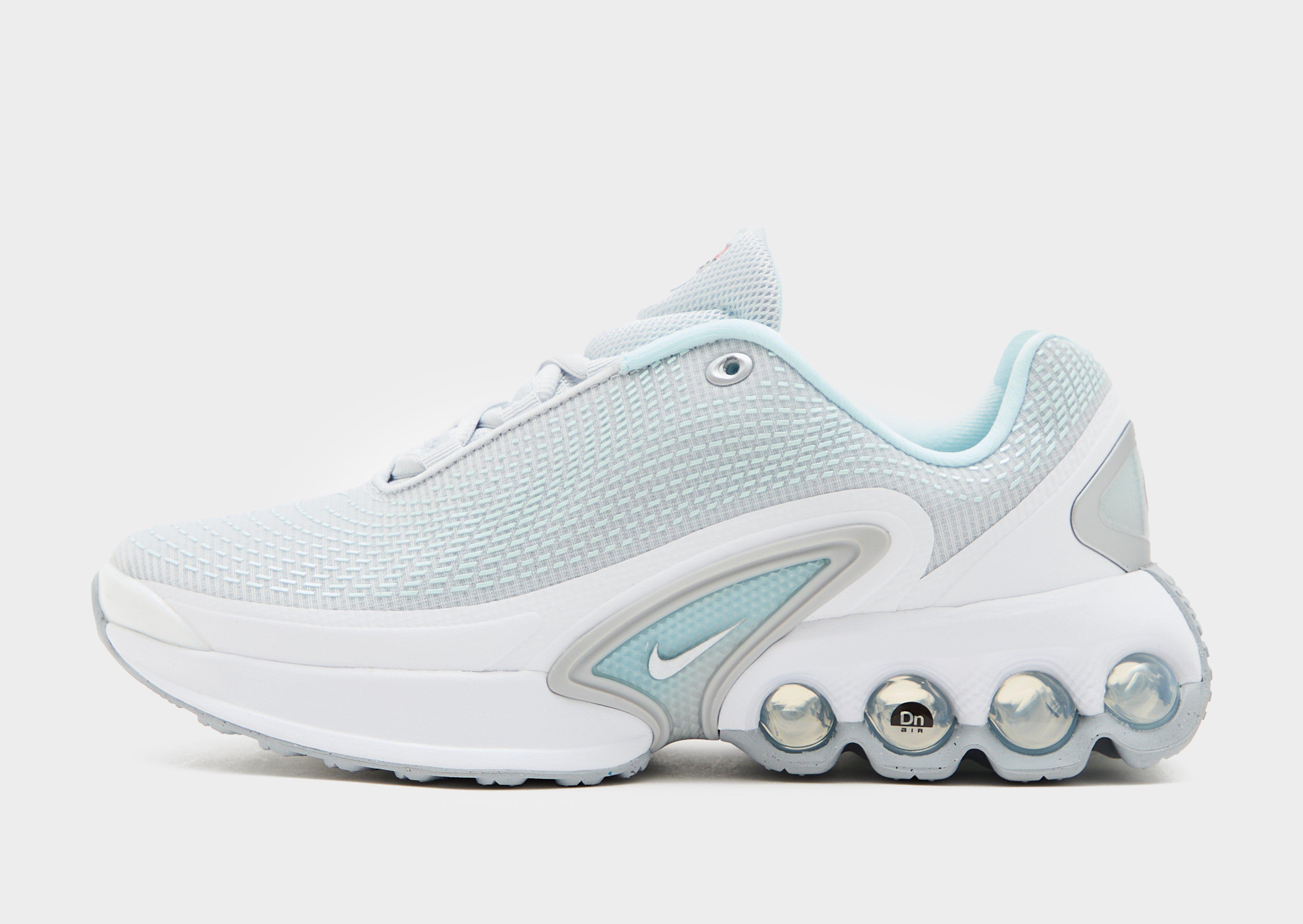 Feel the unreal with every step in these junior's Air Max Dn shoes from Nike. In a Platinum colourway with Blue details, these revolutionary sneakers have a multilayered mesh upper with a haptic print. They feature matte synthetic accents for support, while the plush foam midsole surrounds the cushioning system for added comfort. Stealing the show, the Dynamic Air unit system features two sets of dual-pressure tubes that shift air levels from the firmer heel to the softer tubes towards the forefoot. With a solid rubber outsole to contain that extra energy, these shoes are finished off with signature Swoosh and Air Max logos. Style Code: HQ3256-043
