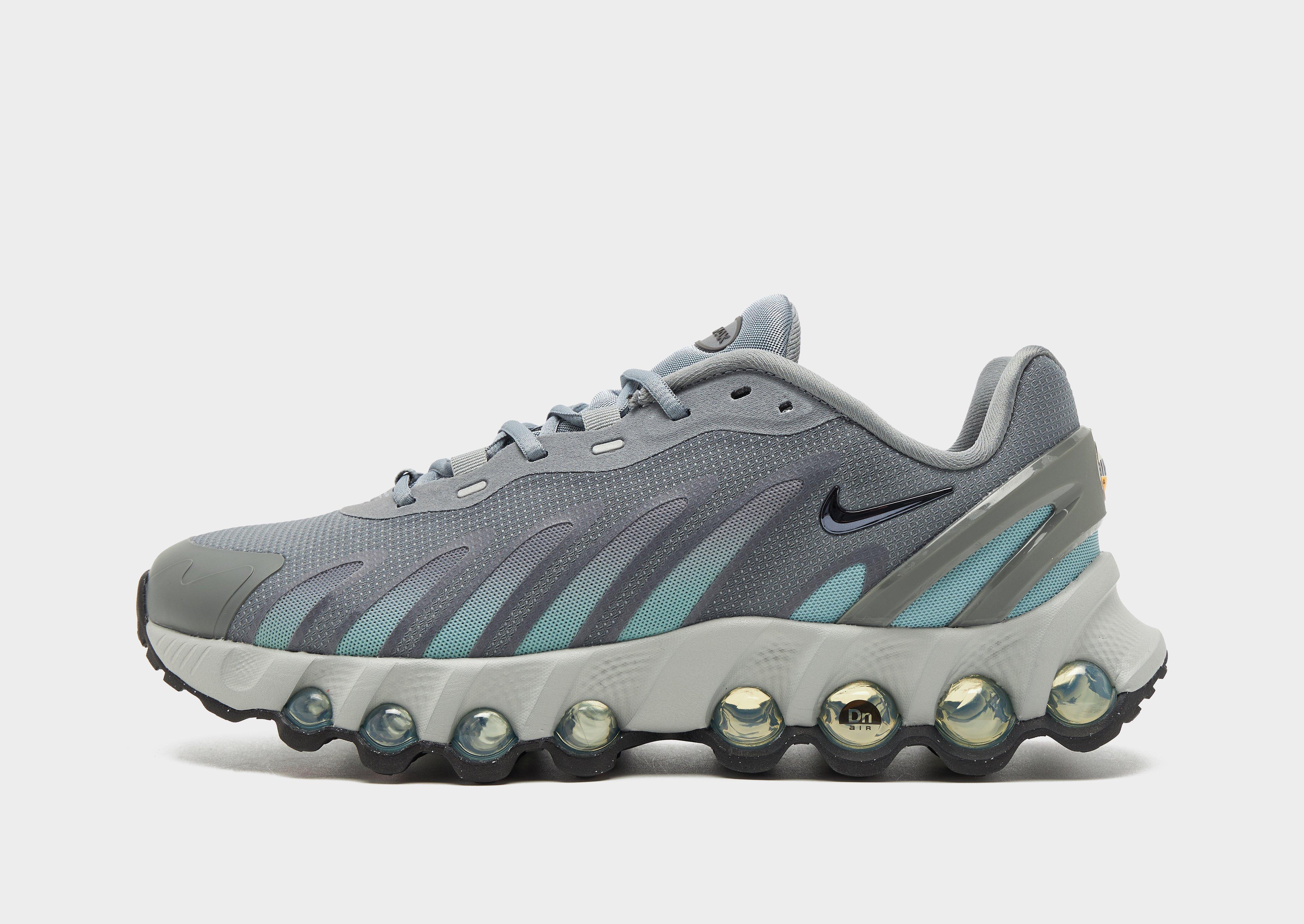 Feel the unreal with every step in these junior's Air Max Dn8 shoes from Nike. In a Grey colourway with Green details, these revolutionary sneakers have a lightweight, mesh upper with synthetic accents for support, while the plush foam midsole surrounds the cushioning system for added comfort. Stealing the show, the Dynamic Air unit system features eight sets of dual-pressure tubes that shift air levels from the firmer heel to the softer tubes towards the forefoot. With a solid rubber outsole to contain that extra energy, these shoes are finished off with signature Swoosh and Air Max logos. Style Code: HF7310-013