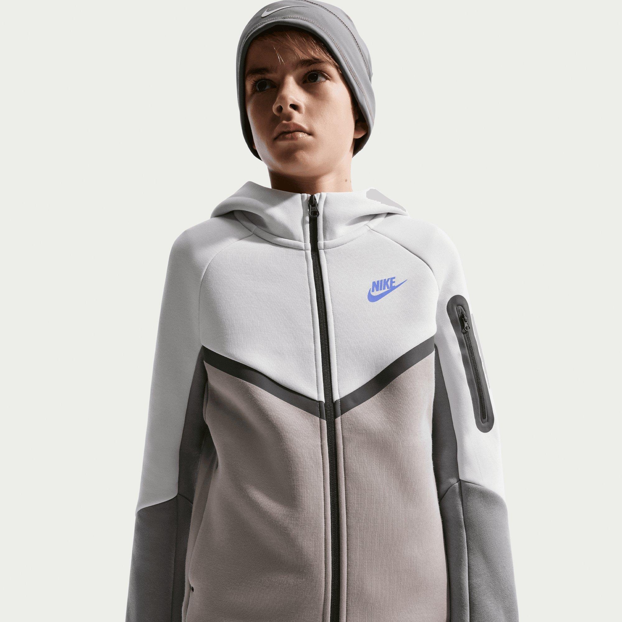 Keep junior athletes warm and ready with this junior's Nike Tech Fleece Hoodie. Standard fit with long sleeves and ribbed cuffs ensures a secure, comfortable wear. Full-zip design makes it easy to layer over tees during training or casual days. Photon Dust colourway adds a fresh, versatile pop to any junior wardrobe. Style Code: HV5867-025