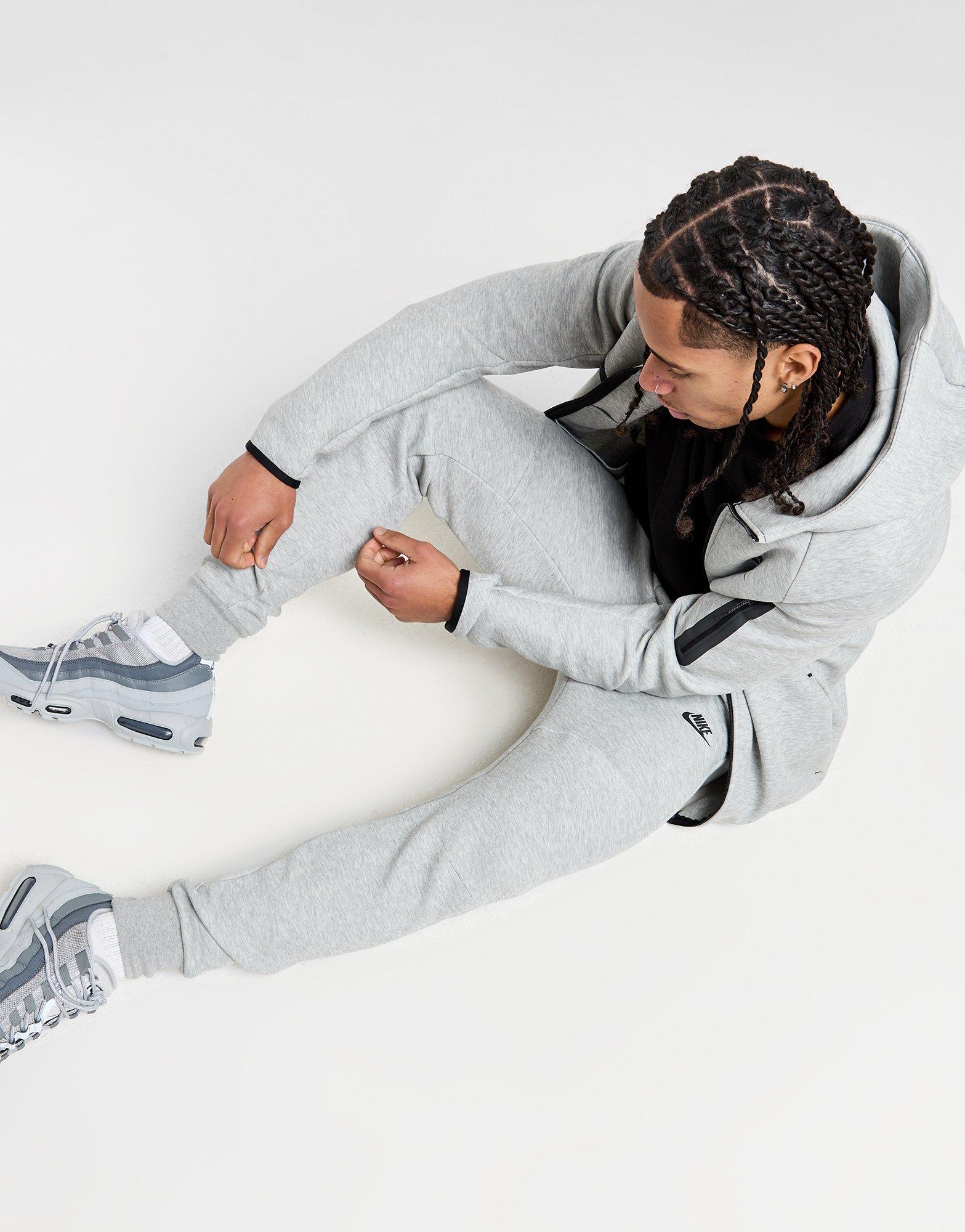 Step up your comfort in classic style with these men's Tech Fleece Joggers from Nike. In a Grey colourway, these standard-fit pants are cut from Nike's legendary Tech Fleece fabric for total comfort. They feature an elasticated waistband and adjustable drawcord for a relaxed fit, with ribbed cuffs for a secure feel. They have side pockets with a zip-up leg pouch for safe storage and are finished up with signature Nike Futura branding. Machine washable