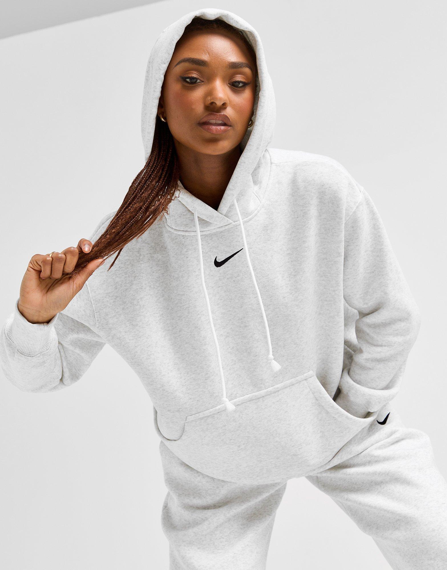 Exclusive to JD. Elevate your off-duty look with this women's Phoenix Fleece Oversized Hoodie from Nike. In a Birch Heather colourway, this roomy pullover is made from midweight fleece fabric that feels soft yet structured. The drawcord-adjustable hoodie offers custom coverage, while the dropped shoulders and ribbed trims keep the fit relaxed. Finished off with a spacious kangaroo pocket and the signature Swoosh to the chest. Machine washable. | Our model is 5'8" and wears a size medium.