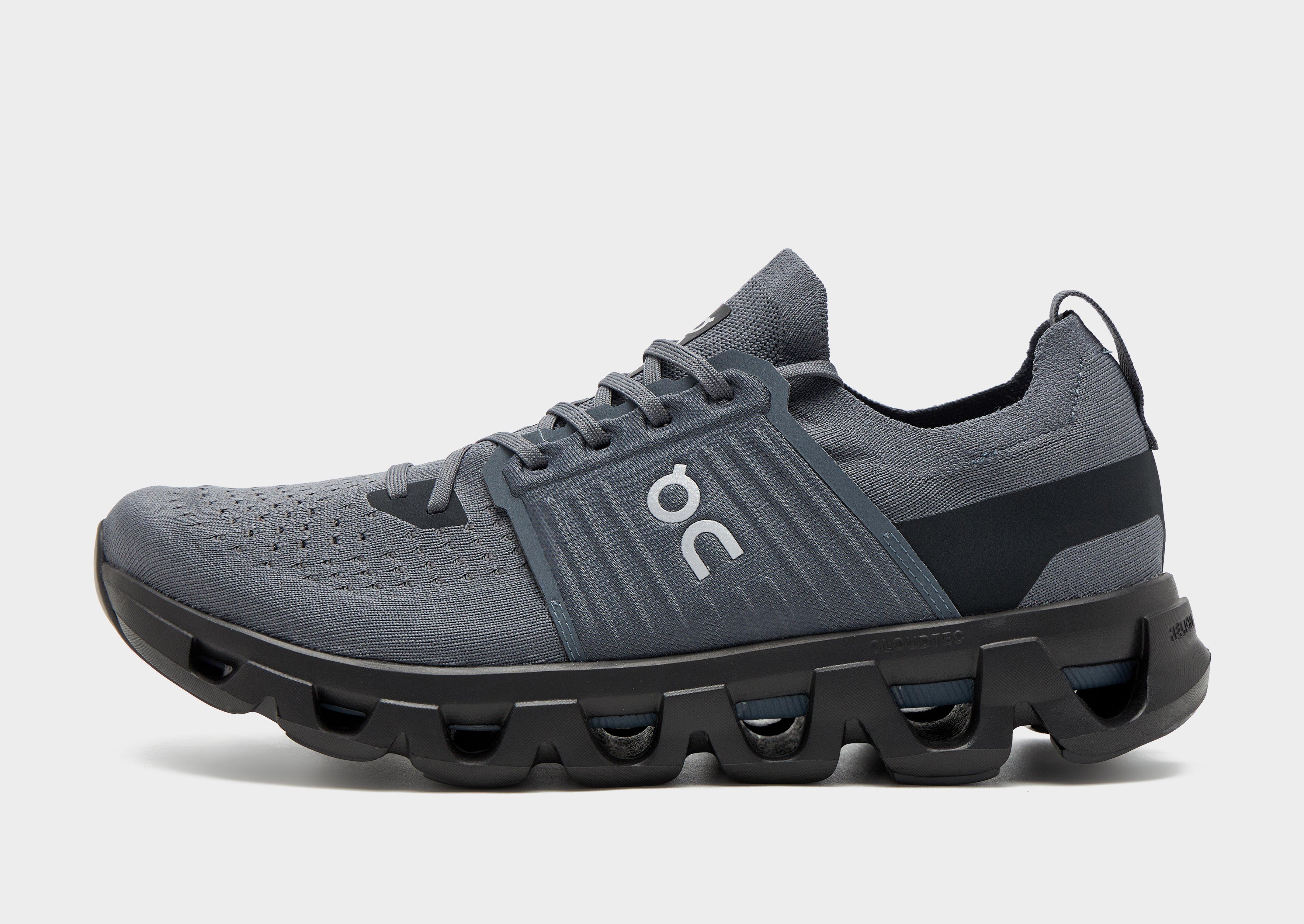 When it's time to hit harder ground, breeze through the city in total comfort with these men's Cloudswift runners from On Running. Landing in a Grey colourway with Black details, these JD-exclusive urban-built runners have a sock-like upper with breathable mesh zones and 3D heel padding for support. The re-engineered sole combines CloudTec and dual-density Helion superfoam for ultra-soft landings, while the Speedboard injects energy. Finished up with a grippy rubber outsole and signature On Running branding. Style Code: 3MG10961591