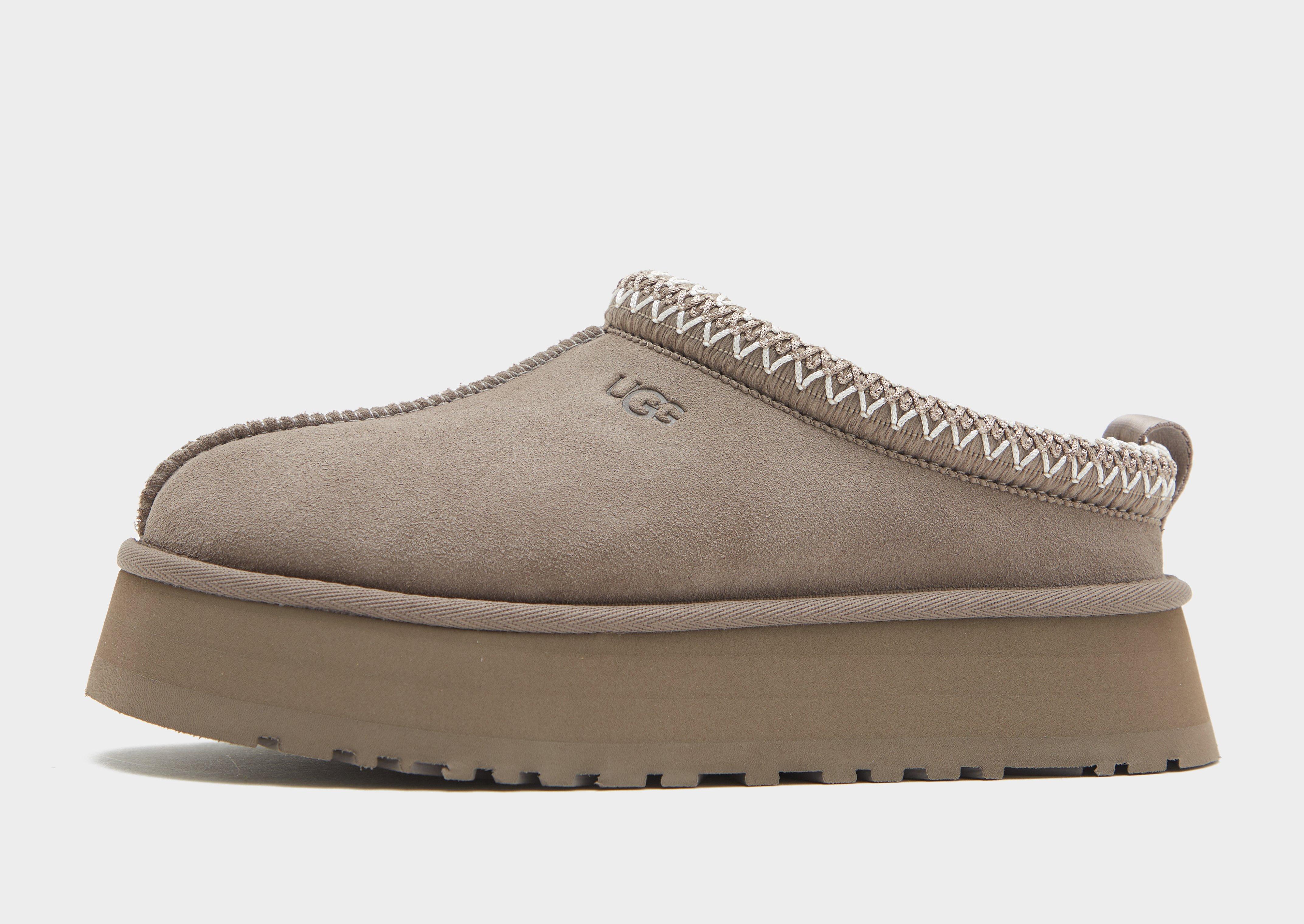 Upgrade your off-duty rotation with these women's Tazz Platform slip-ons from UGG. In a JD-exclusive Grey colourway, these mules have an ultra-soft suede upper for a premium feel. They have a cosy UGGplush lining for toasty comfort, and a platform sole for a bold look. They have a textured rubber tread for light traction, and are finished with the iconic Tasman braid around the cuff and classic UGG branding.