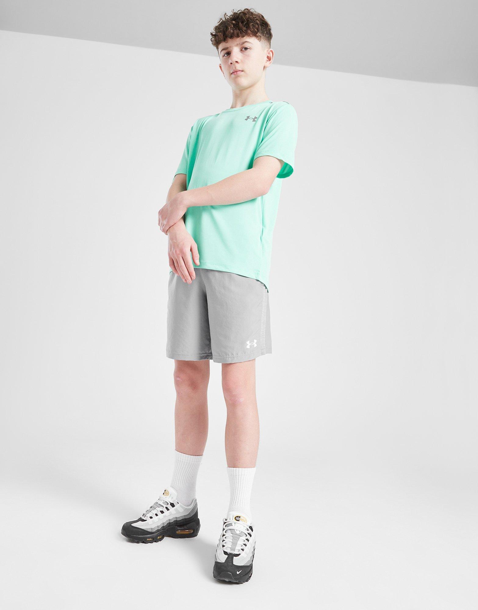 Keep cool when on the go with these juniors' Tech Textured Shorts from Under Armour. In a Steel Grey colourway, these JD-exclusive shorts are cut from light and breathable polyester for cool comfort. They feature an elasticated, drawcord waistband for a relaxed fit, with side pockets for your essentials. Finished up with signature Under Armour branding. Machine washable.