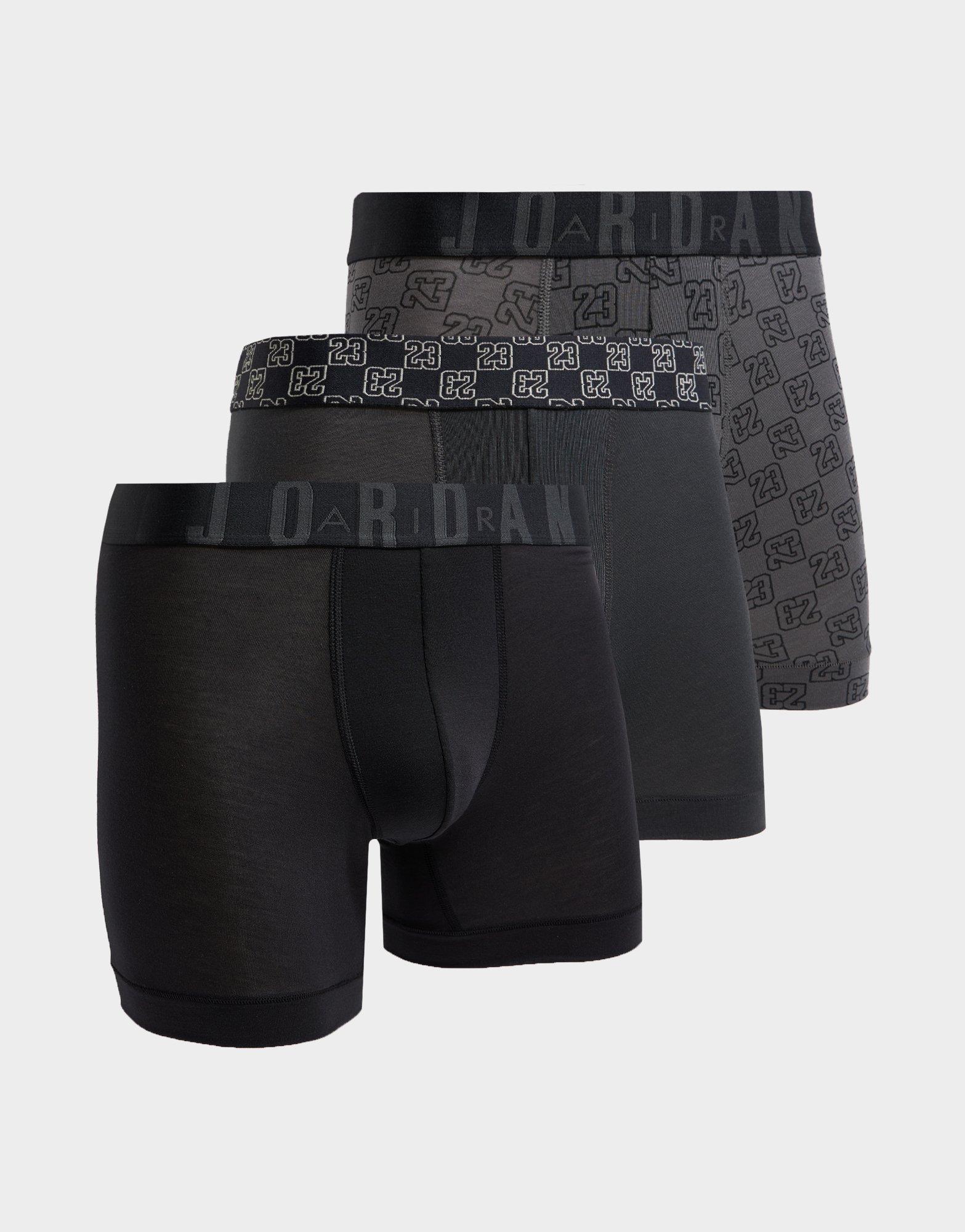Rep the Jumpman on the daily with this men's 3-Pack Boxers from Jordan. In Black and Grey colourways, these boxers have an elasticated waistband that lays flat for a comfy fit. They're made from soft and stretchy cotton fabric for second-skin comfort. Finished up with signature Air Jordan branding repeated around the band. Machine washable. | Please note: for hygiene reasons, underwear cannot be returned.