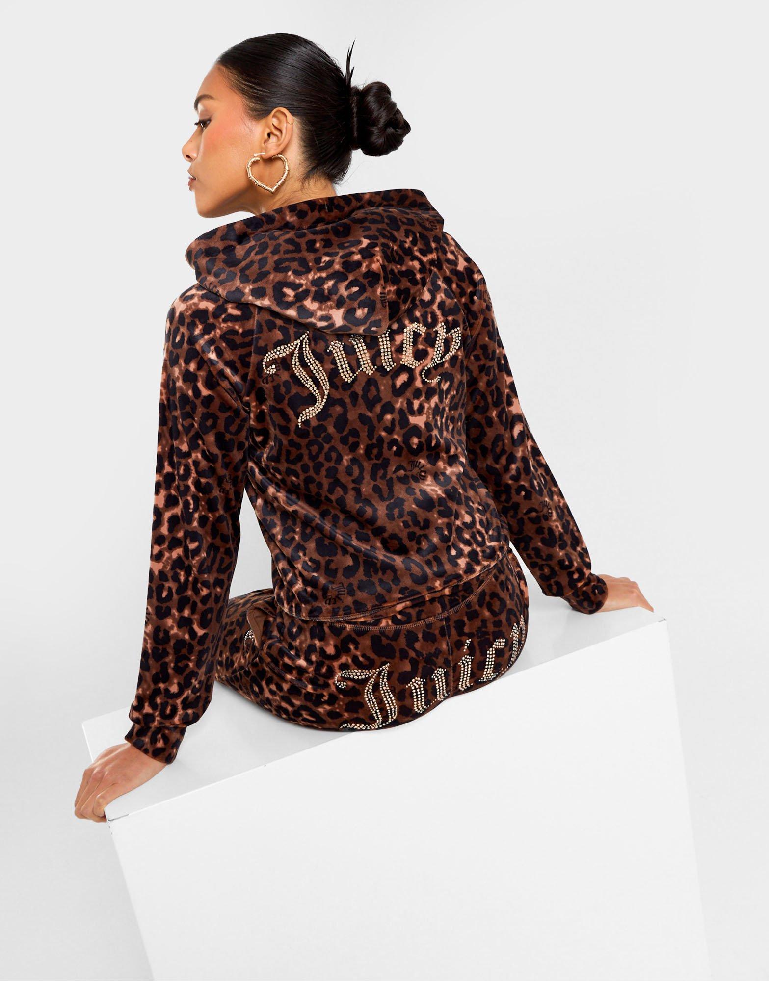 JUICY COUTURE Leopard Velour Diamante Full Zip Hoodie