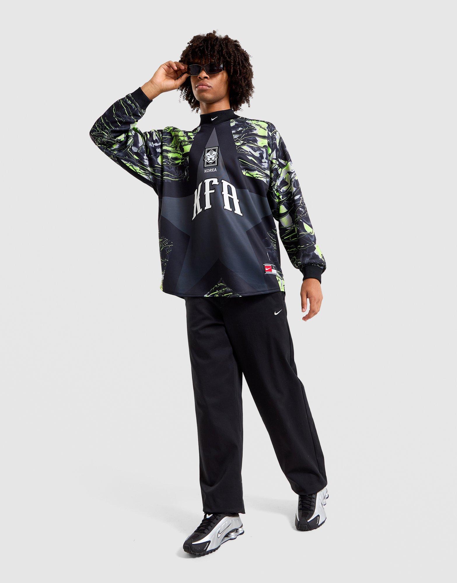 This men's South Korea Long-Sleeve Goalkeeper Jersey from Nike combines athletic performance with street-ready style. Standard-fit cotton-blend fabric ensures comfort, while long sleeves with ribbed cuffs offer secure mobility. Black-and-volt colouring brings a modern football-inspired look to casual or match-day wear. Suitable for training, fanwear, or layering.