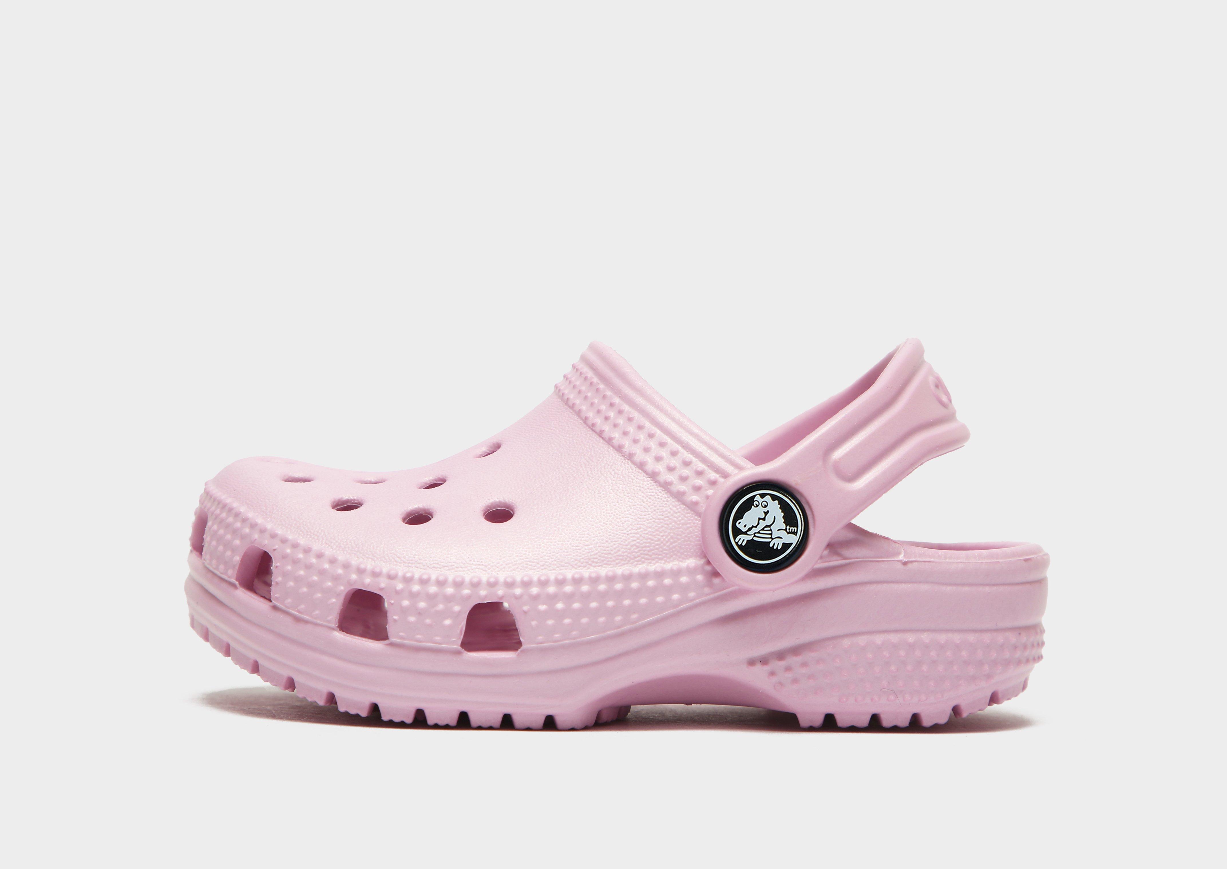 Get them set for the new season with these infant's Classic Clogs from Crocs. In a Pink colourway, these clogs have a smooth, water-resistant synthetic upper for supreme comfort. They feature breathable ports for ventilation and an adjustable strap for a secure fit. With a Croslite midsole to keep your little one comfy, these sandals are finished with a grippy rubber outsole for traction and signature Crocs branding to the heel. Please note: Crocs fit wide. If you have narrow feet, we recommend that you size down. Crocs come with the US size embossed to the sole.