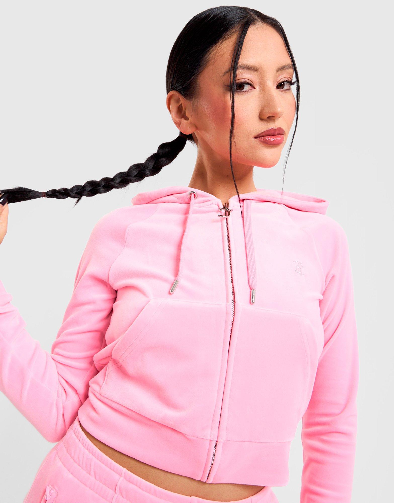 Add an elevated staple to your fit rotation with this women's Hoodie from Juicy Couture. Keep it premium and rep a retro vibe with Juicy Couture, an icon since the ‘90s known for its signature velour and unmissable diamante branding.