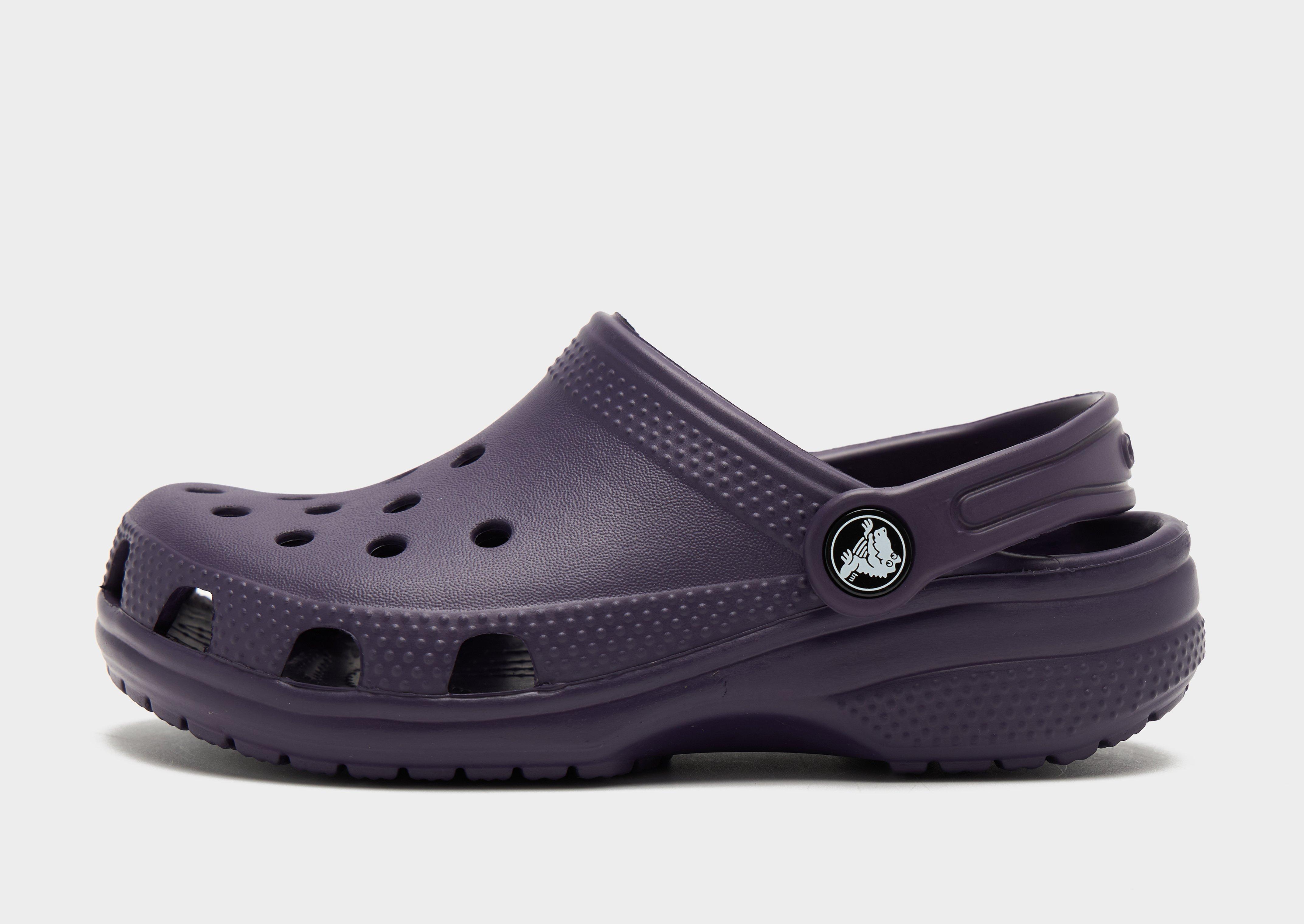 Add an iconic look to your footwear rotation with these children's Classic Clogs from Crocs. In a Dark Iris Purple colourway, these clogs have a lightweight Croslite upper that has ventilation ports for breathability. They feature a soft footbed that offers responsive cushioning with every step, while the outsole keeps you gripped to the surface. Comfortable, simple, these clogs are easy to wear - just slip on and get going! Wear them around the house, to the shops, and pull the heel strap down to lock in. Style Code: 206991-5AS