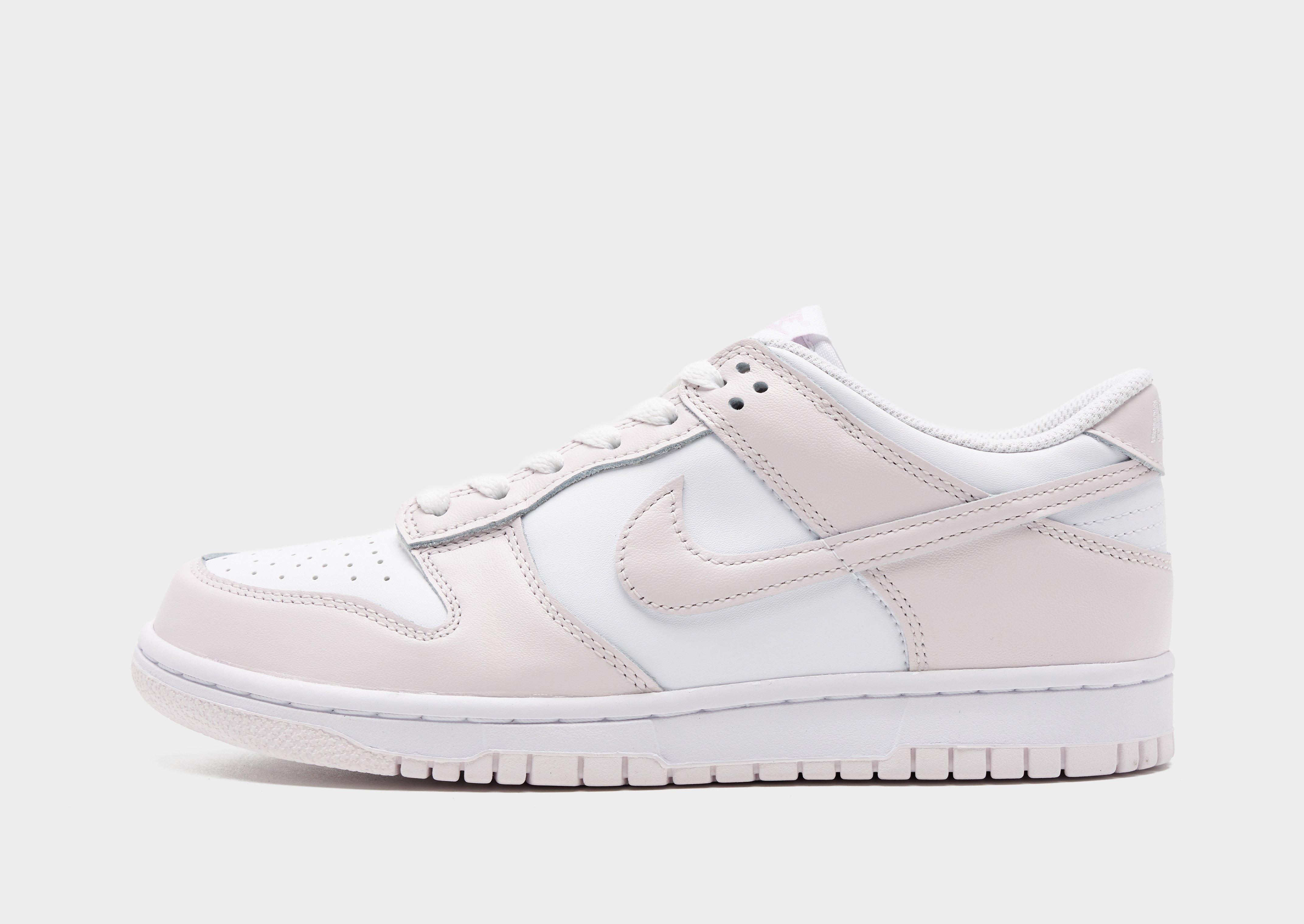 Inspired by b-ball style, these junior's Dunk Low shoes from Nike are back from '85. These low-profile sneakers have a premium leather and synthetic upper keeping the OG design lines. They come in a White colourway with Pink details, and feature a tonal lace-up fastening for a locked in fit. With breathable perforations to the toe box, these shoes are sat on a soft foam midsole for lightweight cushioning and maximum comfort. Finished with a grippy rubber tread for traction on the courts, signature Nike branding and the iconic Swoosh logo to the sidewalls. Style Code: FB9109-128