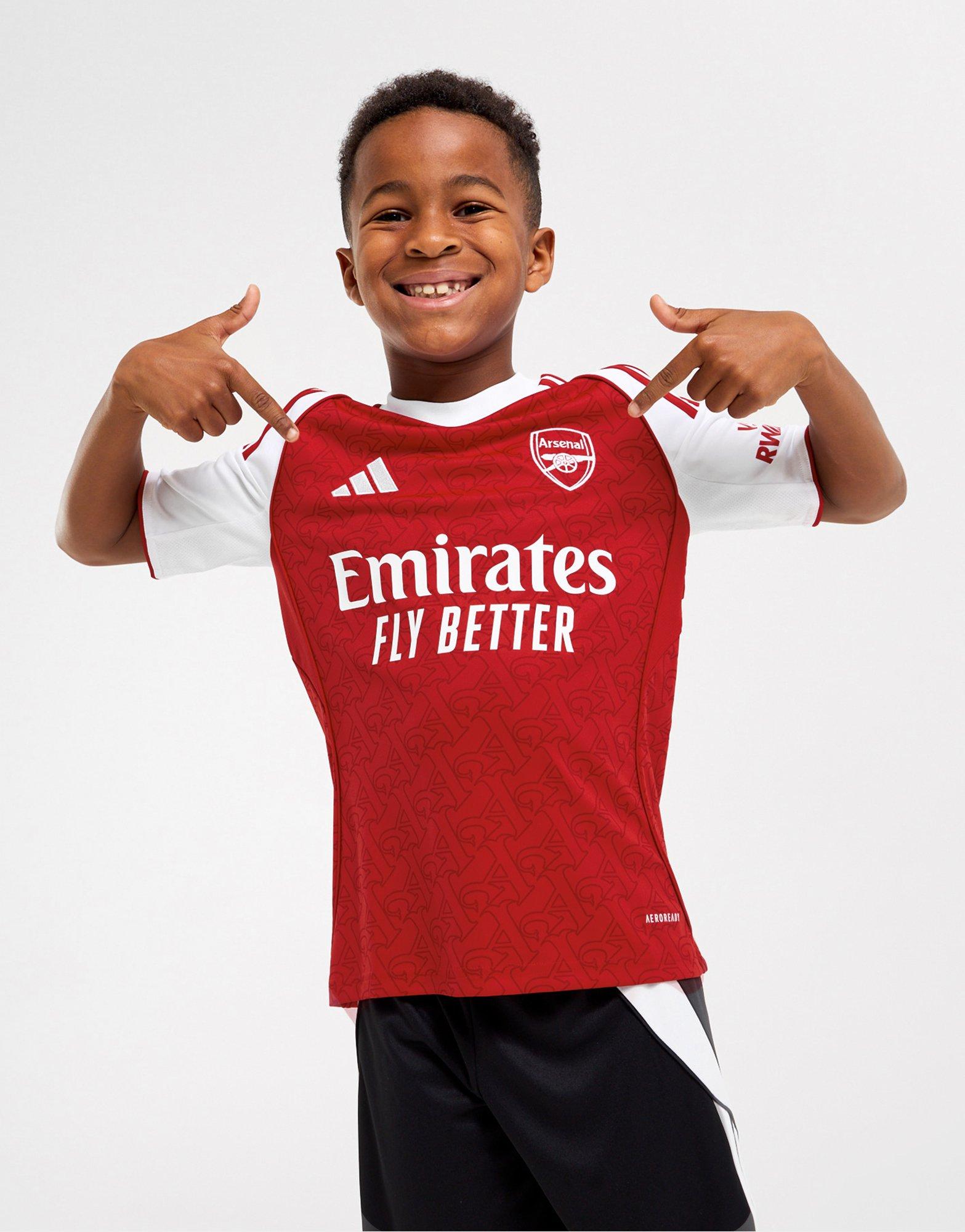 Bring Gunners history back to the Emirates with this juniors' Arsenal FC 2025/26 Home Shirt from adidas. In a Better Scarlet colourway with White short sleeves, this stadium shirt has a Gothic-inspired A print to the front and back. It features a classic crew neckline, while sweat-wicking AEROREADY tech and mesh inserts keep you cool. Built from a recycled polyester fabric, this home shirt is finished off with the 3-Stripes, the Performance logo and the Arsenal crest. Machine washable. | JI9533