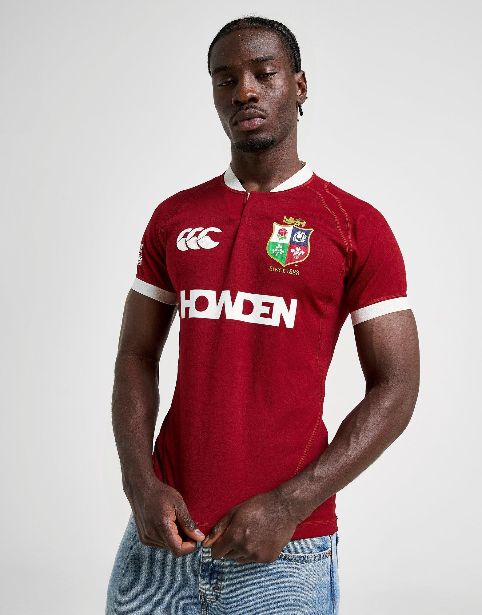 Rep what the pros wear with this men's British & Irish Lions 2025 Players Home Test Shirt from Canterbury. In the legendary Red colourway, this shirt has the classic White trim and a tonal floral print that's inspired by the home nations. It's made from breathable yet ultra-durable jacquard fabric to stand up to every tackle, scrum and ruck. Featuring a henley collar, short sleeves and flat seams for a comfy fit, it's finished with the Canterbury logo and the British & Irish Lions crest. Machine washable. | Our model is 6'1" with a 36" chest and wears a size M.