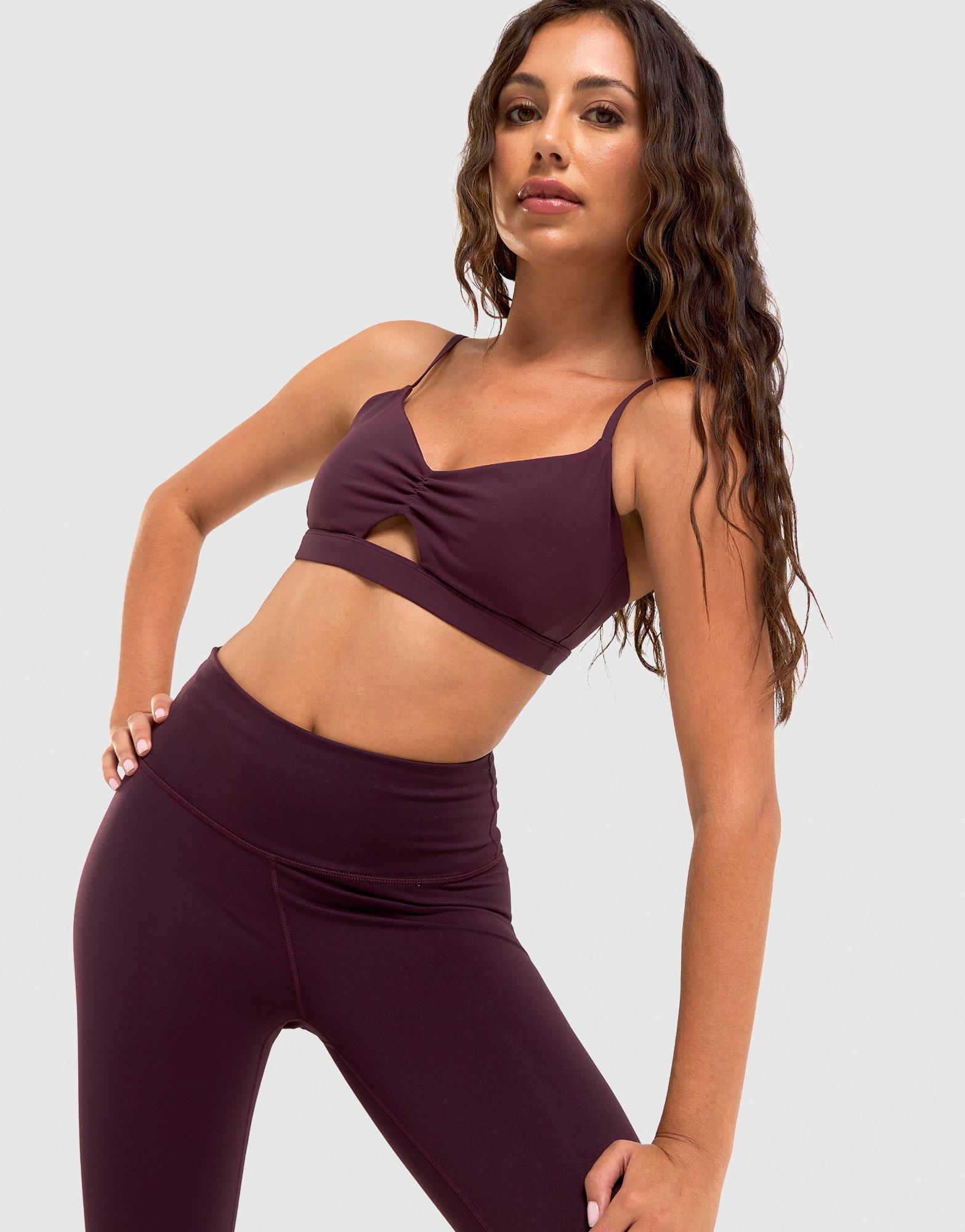 Train in style with the women’s Fabletics Light Support Cutout PureLuxe Sports Bra in burgundy red. Standard fit and cutout detailing combine fashion with function. Perfect for pairing with high-waist leggings or Oasis shorts. Comfortable for low-impact workouts or athleisure. Style Code: BA25006876942