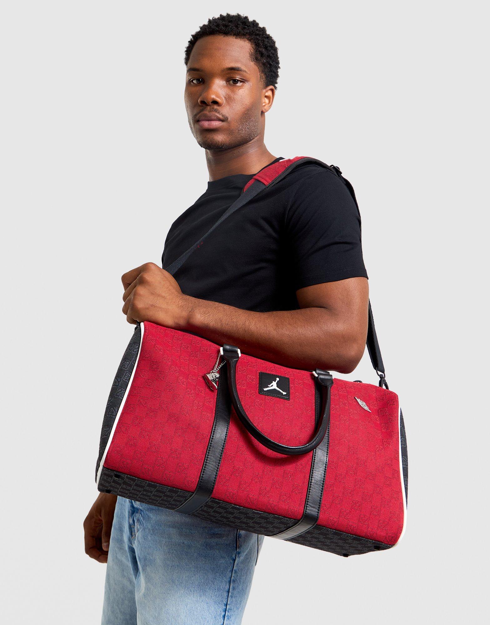Take your gear on the go with this Medium Monogram Duffle Bag from the Jordan brand. In a Red colourway with tonal details, this bag is made with durable woven fabric for durable use. It features a secure dual-zip closure with pockets to keep your stuff organised, and has an adjustable shoulder strap as well as carry handles for custom carrying. Finished with an all-over '23' monogram , with a branded luggage tag and Jumpman patch to the front. Spot clean.